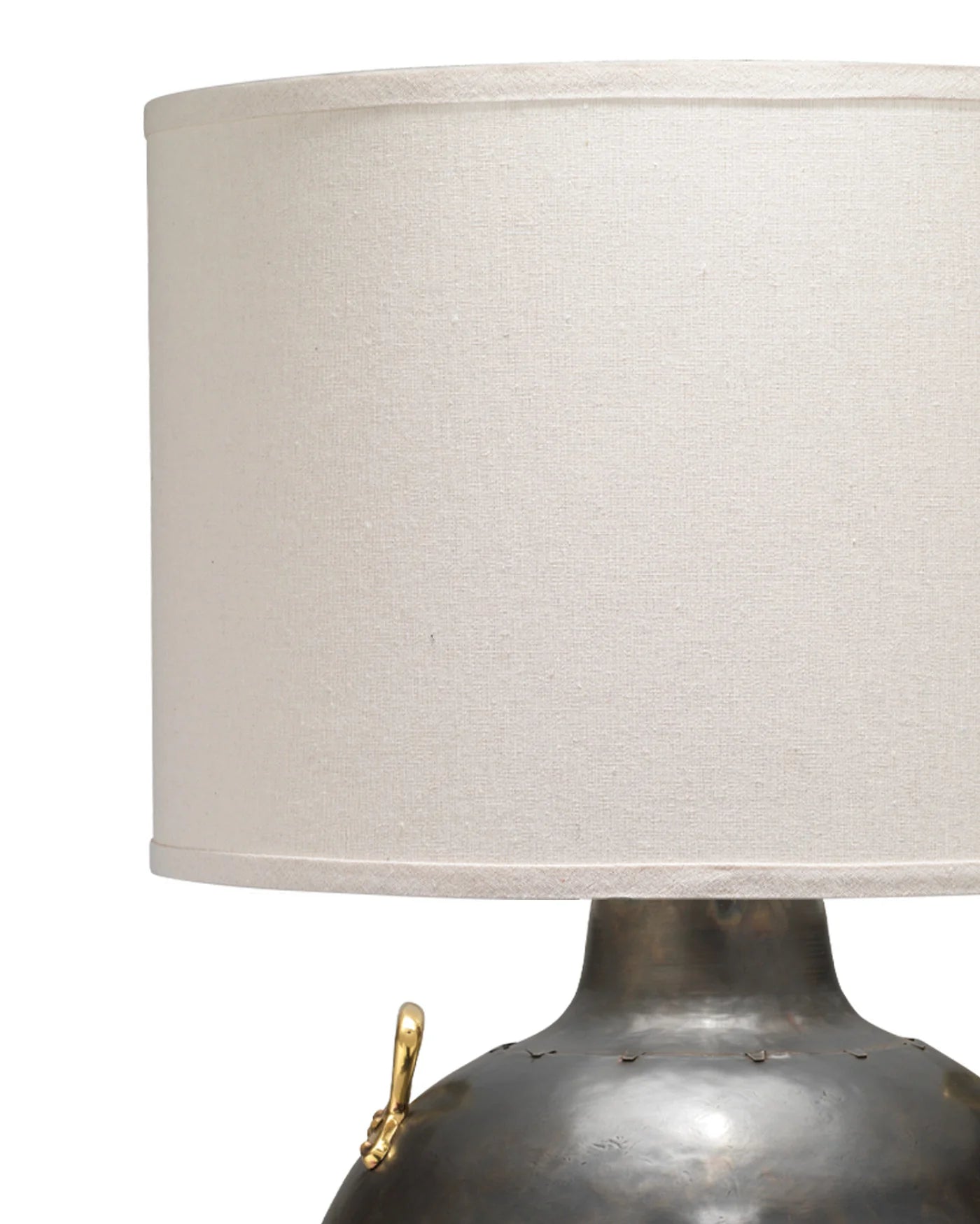 Elevate your decor with a hint of refinement using this distinctive metal table lamp. Boasting an iron finished base modeled after a two-handed kettle and a cozy natural burlap shade, this lamp emanates a contemporary and trendy aesthetic. Ideal for creating a welcoming and inviting ambiance in any room. Incorporate an element of sophistication into your decor with this metal table lamp. Its sleek iron finished base, inspired by a two-handed kettle, is complemented by a natural burlap shade for a warm and handsome appeal. This unique lamp will bring a modern and stylish touch to your space, evoking a cozy and inviting atmosphere.