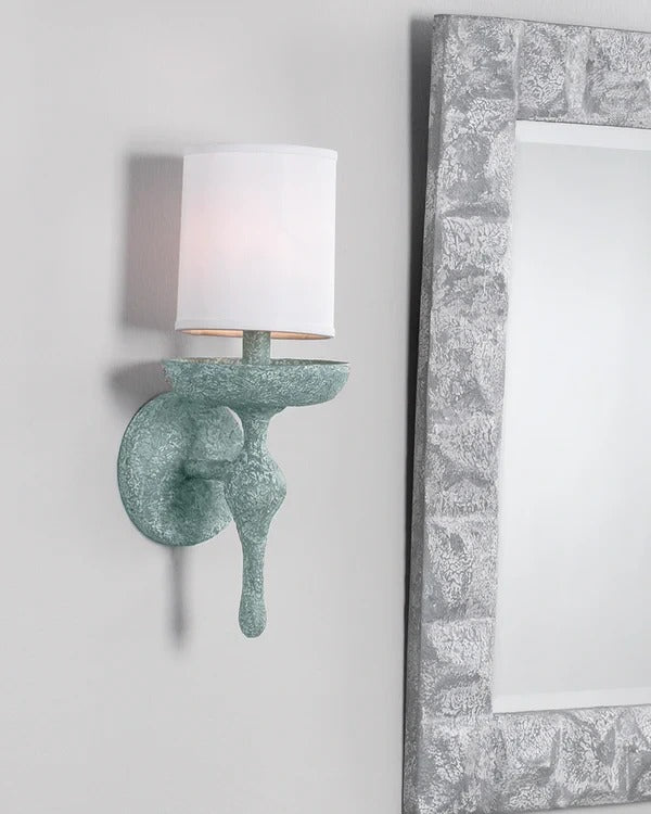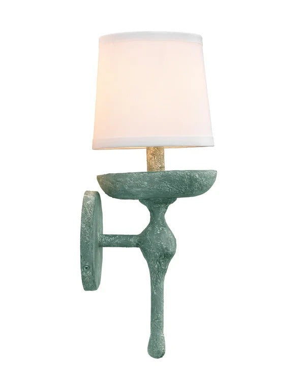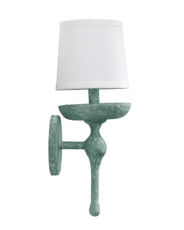 The Concord Wall Sconce, offered in Grey or White plaster finishes, blends a traditional silhouette with a textured surface that adds coastal charm and casual appeal. Crafted from steel with a hand-applied plaster coating, it balances formal design with approachable character. The grit of the plaster introduces unique texture, while the tapered white linen shade softens the look, making it suitable for transitional, coastal, or contemporary interiors. Each artisan-made piece carries natural tone and texture variations, ensuring individuality in every sconce.