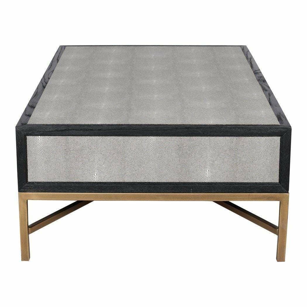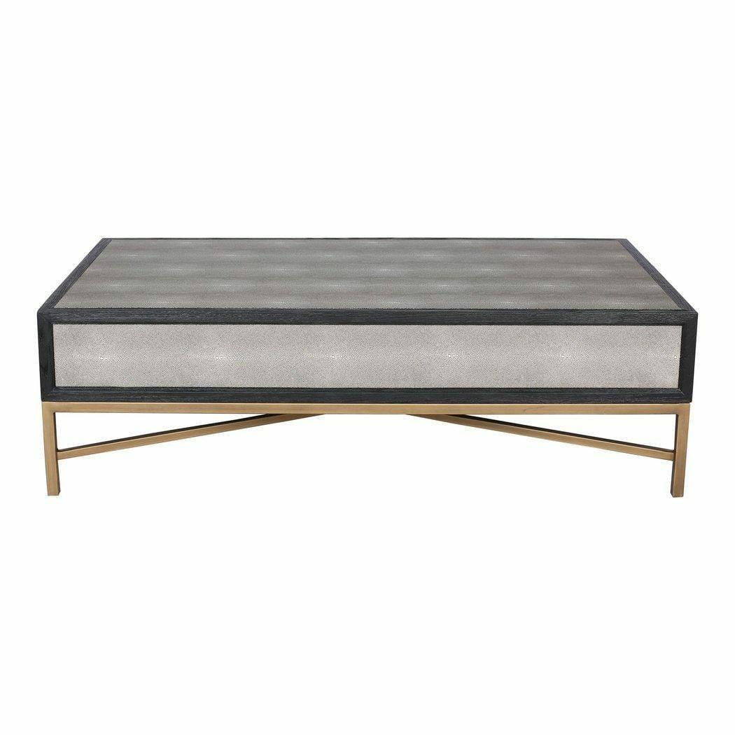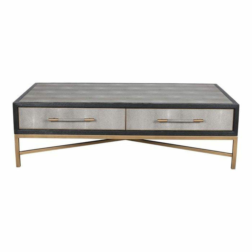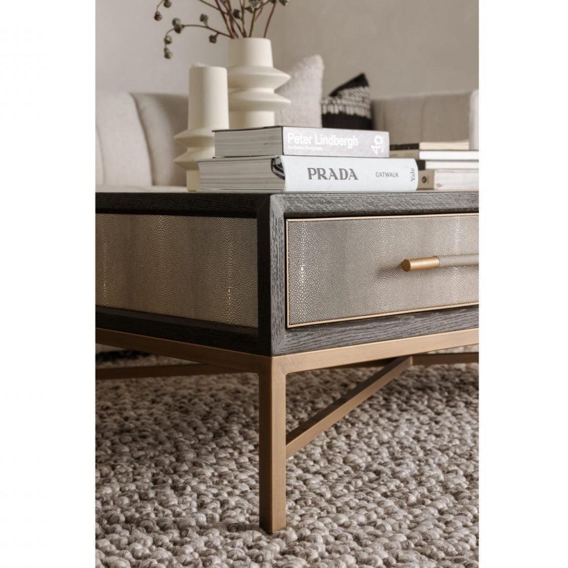 Grey Shagreen Gold Accents Art Deco Coffee Table With Drawers Features: