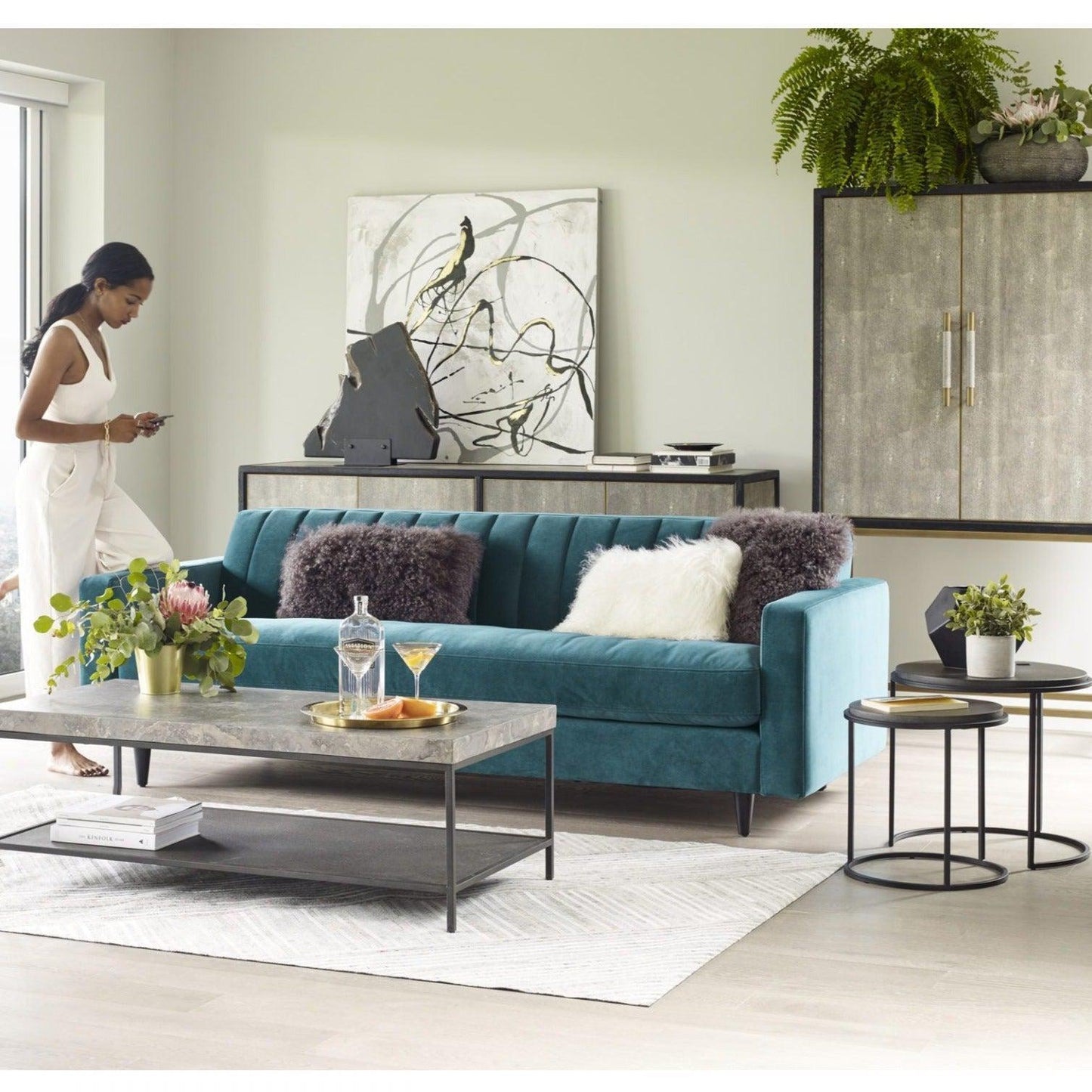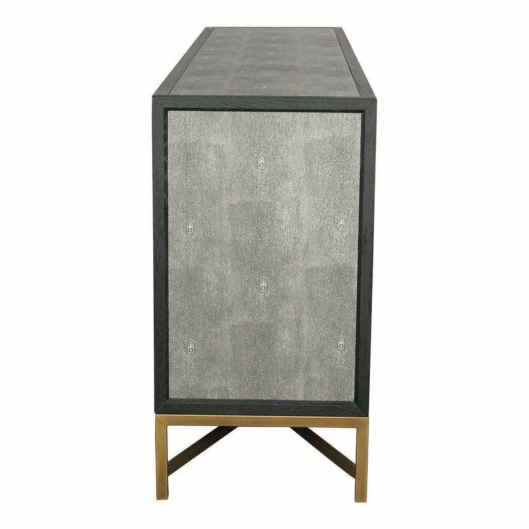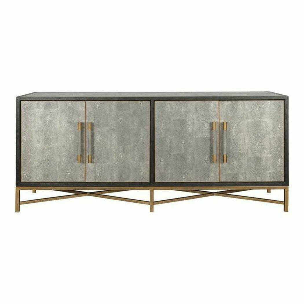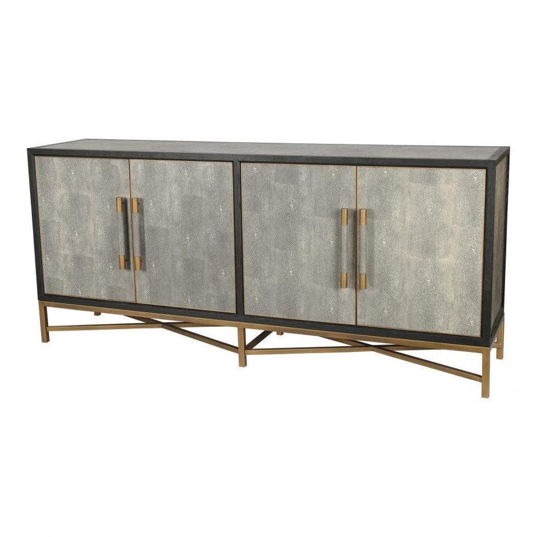 Grey Shagreen Gold Accents Art Deco Sideboard on Stand Features: