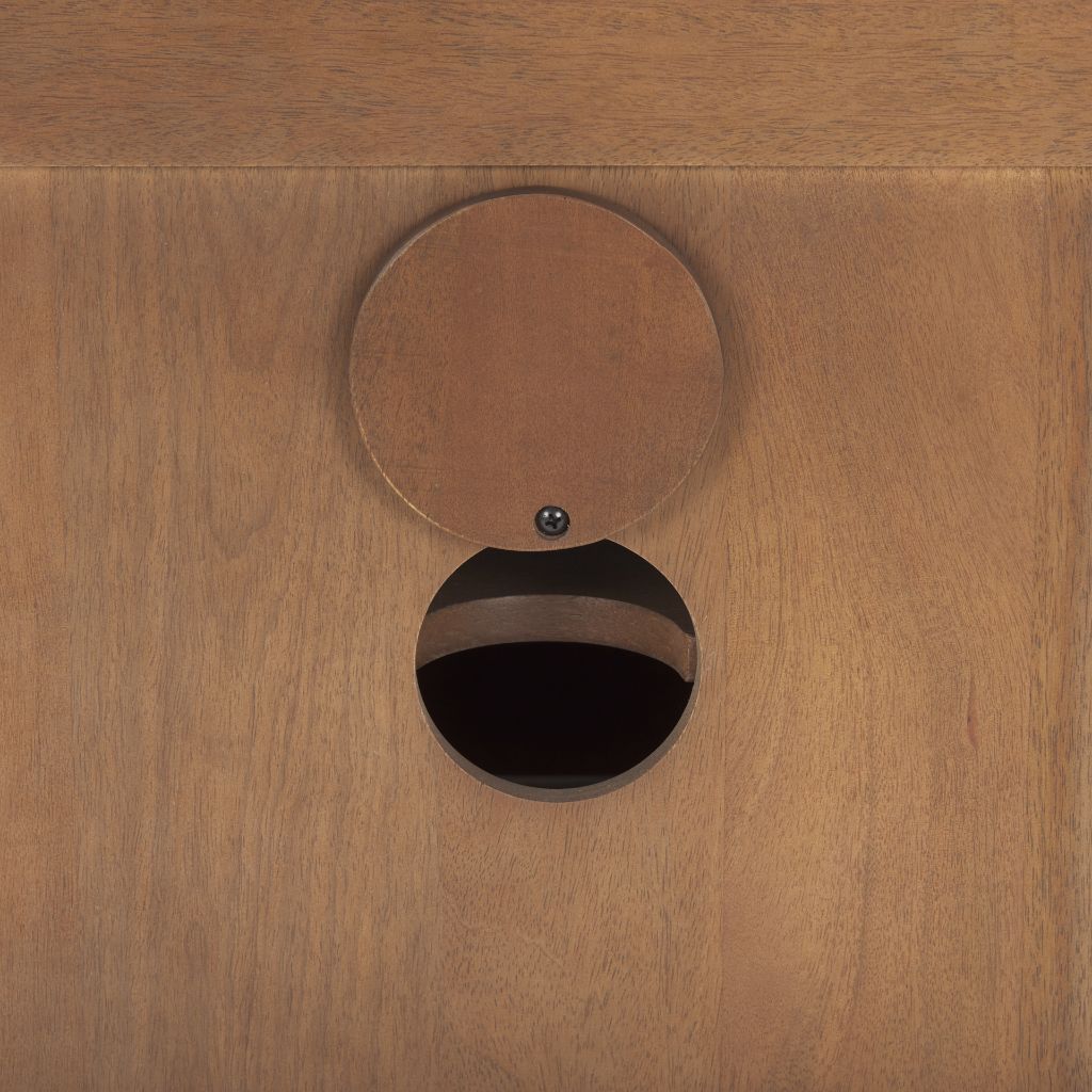 - Material details: Crafted from smooth mango wood and cane with solid brass knobs