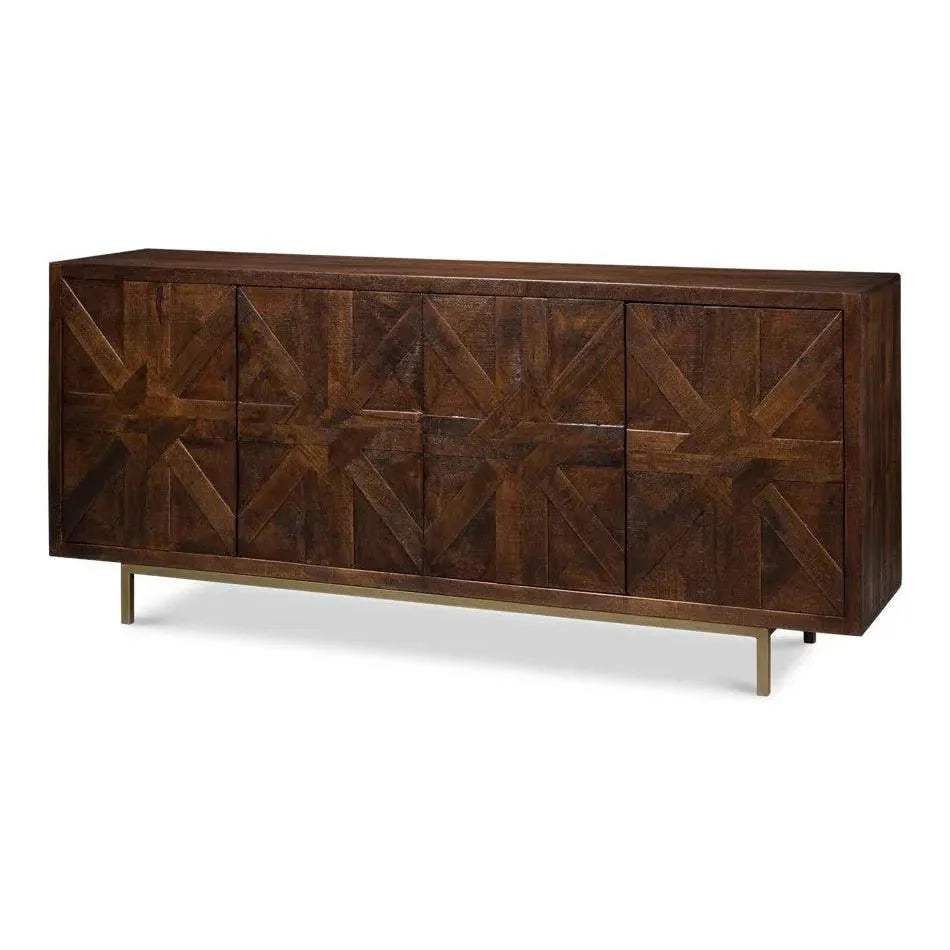 Enhance the storage capabilities of your dining area or kitchen with the Griglia Four Door Sideboard. This versatile and elegant piece features mango wood construction, clean lines, and understated elemental styling. With four doors that open to reveal one adjustable shelf behind each, you can easily tailor the storage for your plates, glassware, serve ware, and linens.