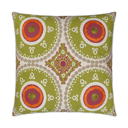 This throw pillow features a vibrant shade of green, adding a refreshing pop of color to any space. Made from high-quality materials, it is designed for both comfort and style. The pillow comes with a fill insert included, making it ready to use right out of the box. Add a touch of elegance and coziness to your home decor with this lovely accent piece. Dimensions: 24 x 6 x 24 Weight (lbs): 6 Materials: 63% Polyester, 22% Acrylic, 10% Cotton, 5% Rayon Colors: Green Removeable Cover & Insert Hidden Zipper Handcrafted in California Hand Cut & Sewn to Order Due to various screen settings the color of the item may look slightly different in person from what you see on your screen. We try to make sure that the image you see is as accurate as possible.