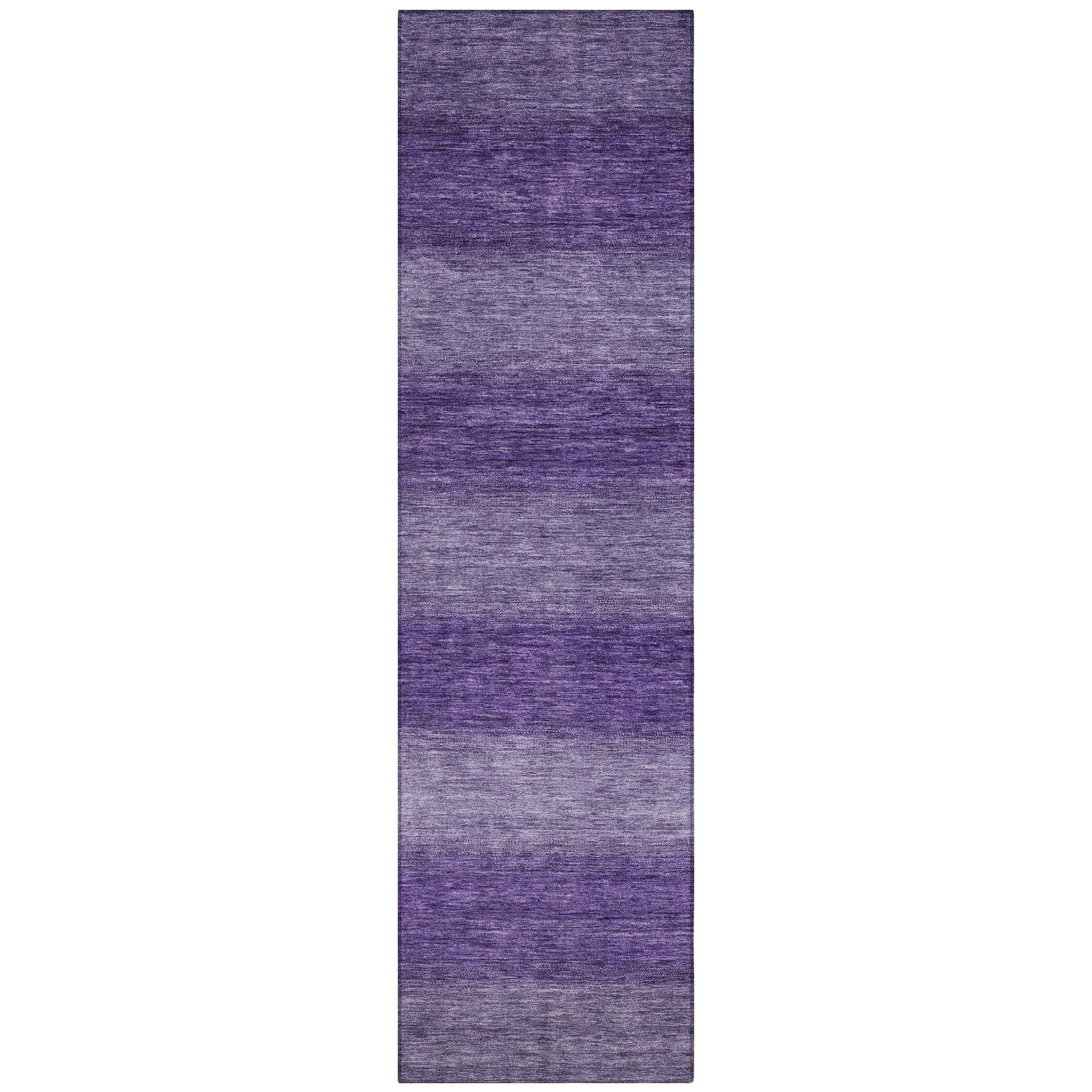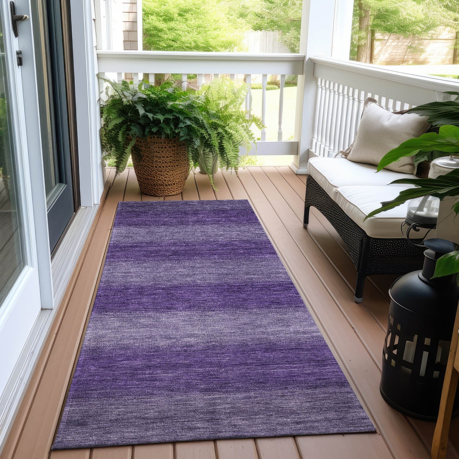 The ombre horizontal stripes on this rug offer a beautifully blended gradient, creating a subtle yet impactful design. The smooth transitions between shades enhance the room's atmosphere, adding warmth and texture. Perfect for transitional décor, the stripe pattern bridges the gap between traditional and modern elements. This purple rug is designed for both indoor and outdoor spaces, ensuring versatility and style in any setting. With its UV-stabilized feature, it retains its vibrant color, even in outdoor environments, although it performs best in covered areas with lower hours of direct sunlight.