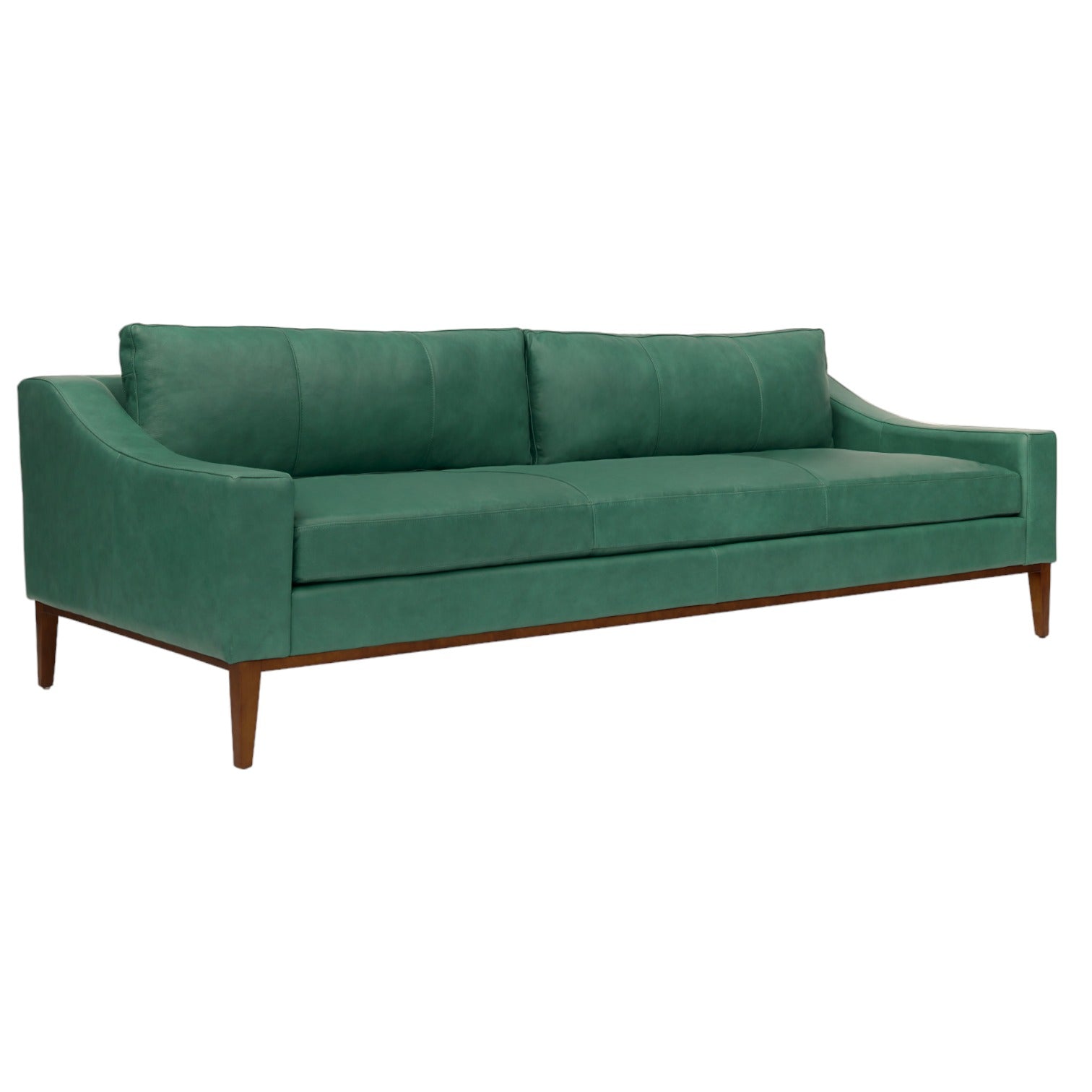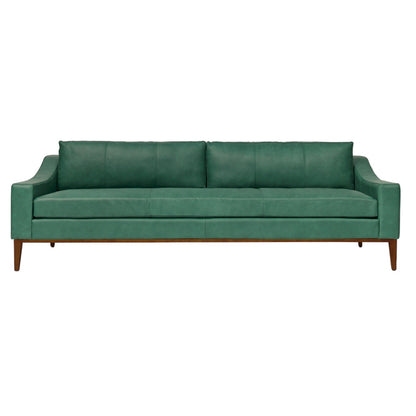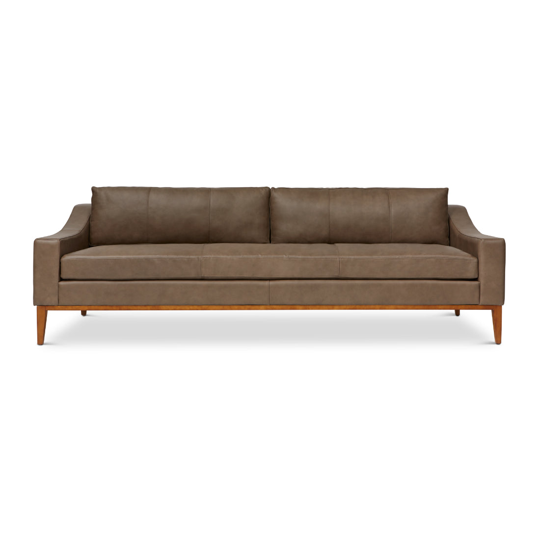 The long-lasting frame is crafted from kiln-dried hardwood, hardwood plywood, and exposed hardwood legs and bases. These frames are corner-blocked, glued, and stapled for extra stability. The sinuous springs support the cushions, giving the seat and back a soft, yet supportive feel. High-resiliency, high-density polyurethane foam boosts the comfort of the seat. For an added touch of luxury, you can choose a down and feather envelope, but it's not available with leather, as we don't consider it comfy. Rest assured – there are no CFCs or fire retardants in this sleek, plush piece.