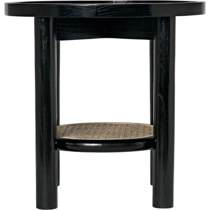 Introducing the Hide Away Side Table in Charcoal Black. This stylish end table features a striking geometric base design and a convenient natural cane shelf, perfect for keeping your essentials close at hand. Its bold and sleek charcoal black finish adds a touch of modern sophistication to any home decor. This versatile end table features a boldly simple geometric style base in a charcoal black finish with a natural cane shelf. Add this stylish and functional end table to your home decor. It boasts a striking geometric base design and a sleek charcoal black finish. Keep your essentials close at hand with the convenient natural cane shelf.