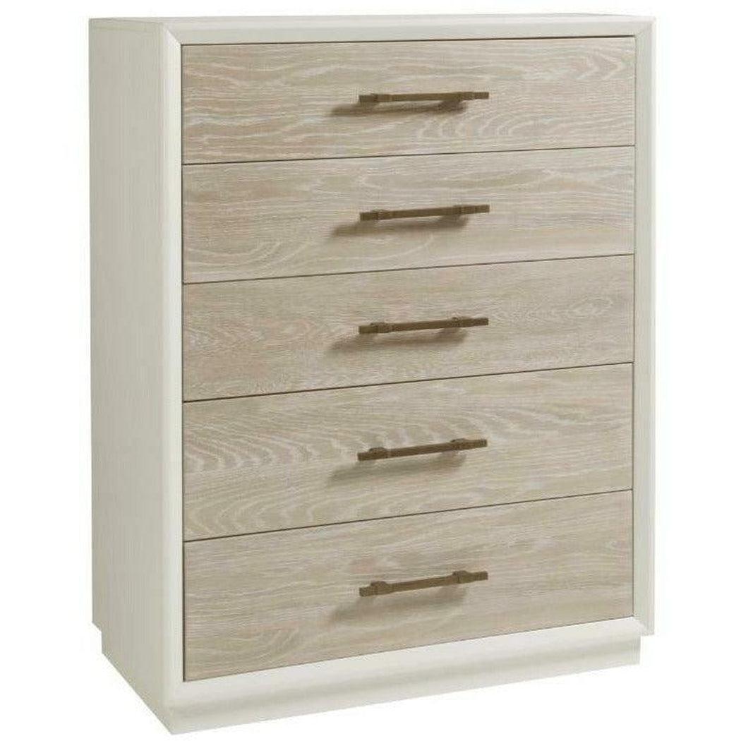 Upgrade your living space with the Panama Jack Boca Grande Five Drawer Chest, part of the brand's contemporary collection. Boasting clean lines, a high gloss finish, and wire-brushed oak veneers, this chest offers a refined and casual aesthetic. Designed with quality and value in mind, it's the perfect addition to any modern lifestyle. The Boca Grande collection captures the essence of contemporary style, with its clean lines, high gloss finish, and wire-brushed oak veneers featured throughout.