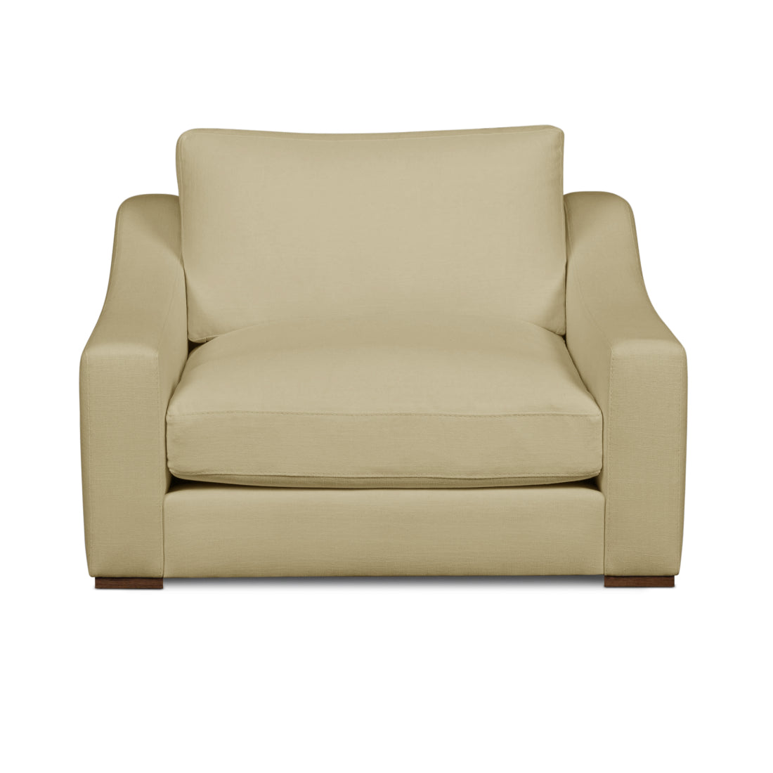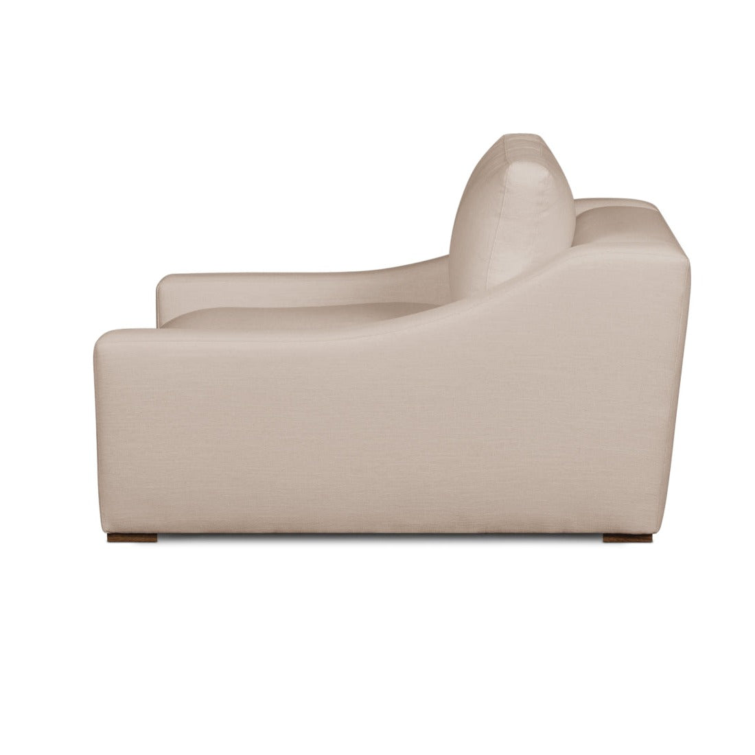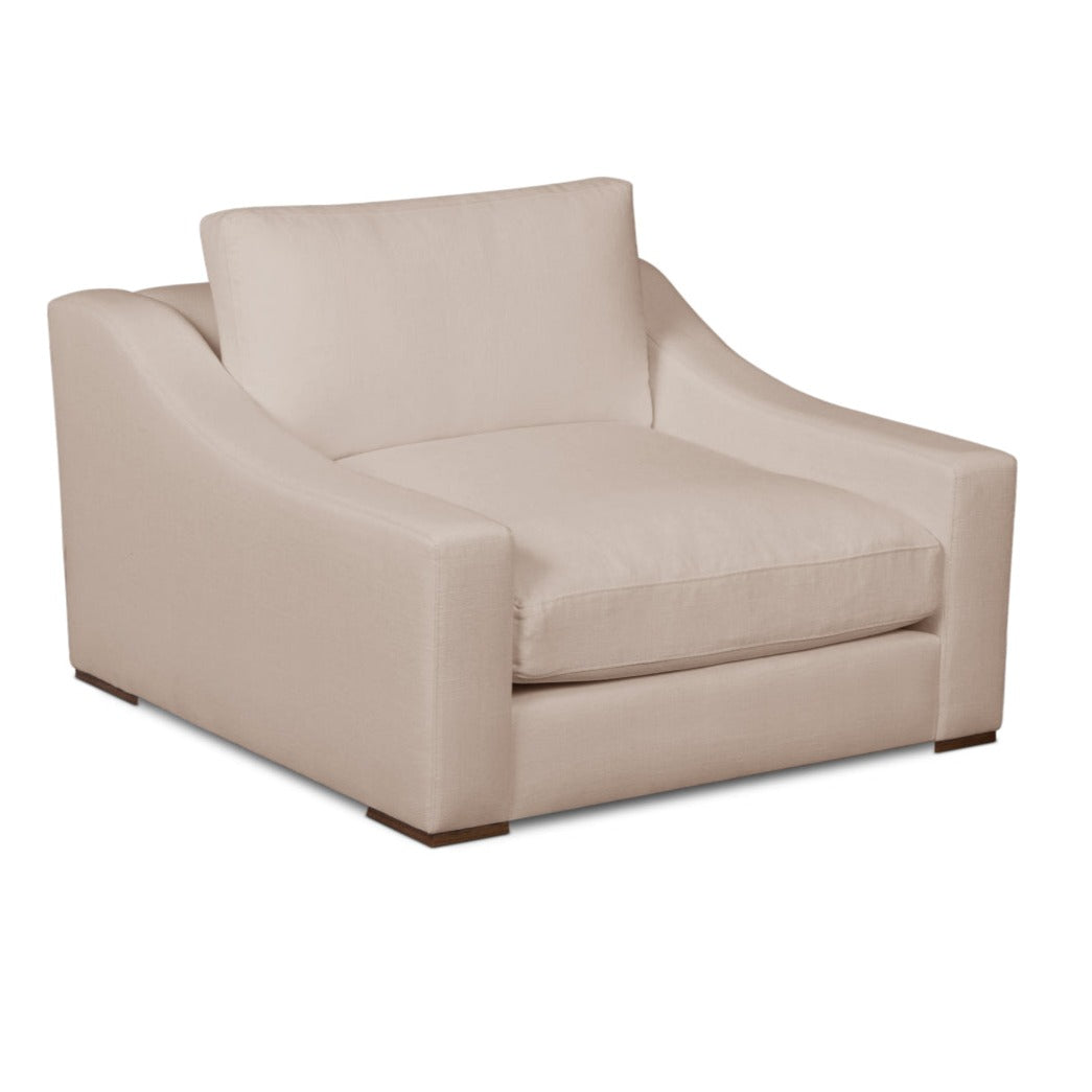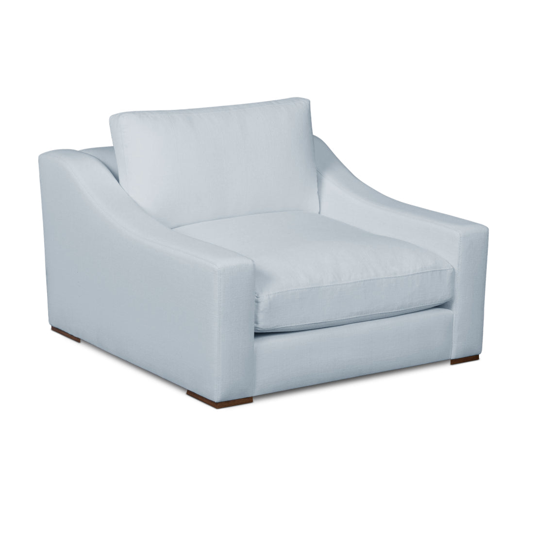 This sophisticated Hilary club chair has been treated to resist stains and is expertly designed to seamlessly mix traditional and modern styles. Its generous proportions and elegant appearance are enhanced by luxurious bench cushioning and a tall, sturdy base. As a member of the FURNITURE BY THE FOOT collection, it is a timeless and refined addition to any room. The chair's kiln-dried hardwood and hardwood plywood frame, along with corner blocking, gluing, and stapling, are crafted for long-lasting comfort and support.