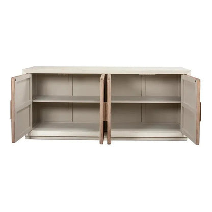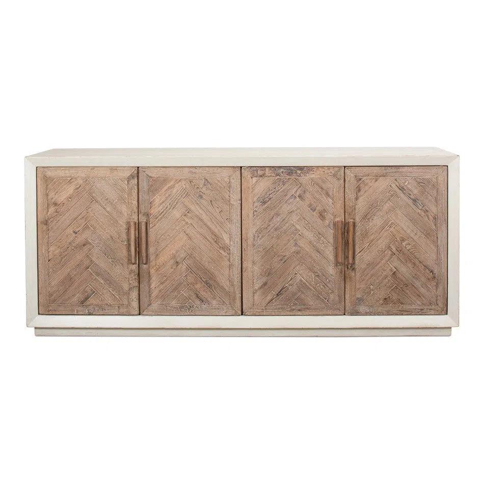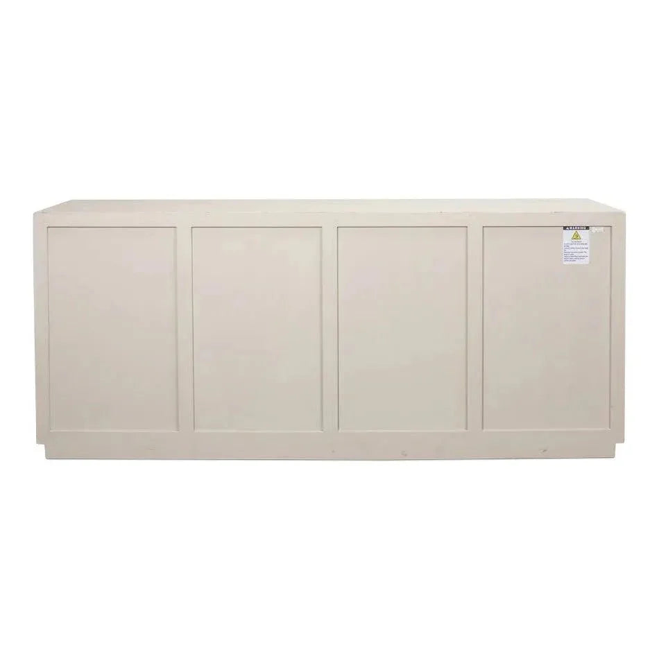 Create a timeless look with the Hollis 4 Door Sideboard in classic antique white. It features antique white with natural doors that exude elegance. Crafted from Reclaimed Pine, this sideboard is a versatile addition to your decor. Maximize storage and style in any room. With four doors and Reclaimed Pine construction, the Hollis 4 Door Sideboard in antique white offers both timeless design and durable functionality. Bring a touch of elegance to your home with natural doors that boast an authentic, classic look.