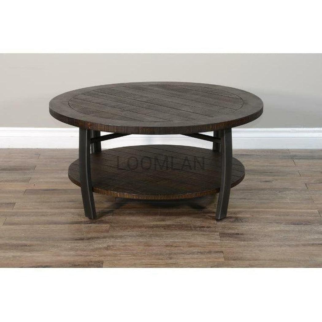 38" Round Dark Brown Cocktail Coffee Table with Storage Shelf Features: