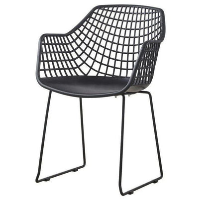 Elevate your outdoor space with our luxurious 22.5 Inch Black Chair Set. Sleek and contemporary, its perforated back allows for a gentle summer breeze to flow through. Crafted with durable polypropylene and powder-coated steel legs, it's easy to clean and perfect for both indoors and outdoors. Experience comfort and style with curved form and sloped armrests. The Chair Black Contemporary, Chair Black Honolulu, Set of 2 by Moe's Home Collection Furniture is the epitome of sophistication and luxury. This patio chair boasts a sleek, contemporary design with a perforated back that allows for a refreshing summer breeze to flow through. Its curved form and sloped armrests add an elegant touch and make it both practical and easy to clean.