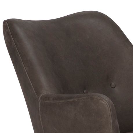The Hotchkiss Swivel Arm Chair brings a blend of classic style and modern utility to any room. Wrapped in rich brown leather, it exudes comfort and sophistication. This chair is designed to be both a stylish and functional piece, fitting seamlessly into living rooms, offices, or lounge spaces. Its industrial steel frame provides a sturdy structure, ensuring that this chair is built to last. The luxurious leather upholstery adds a touch of class, inviting you to sit back and relax. One of the standout features of this chair is its smooth swivel motion, adding a layer of versatility to its design.