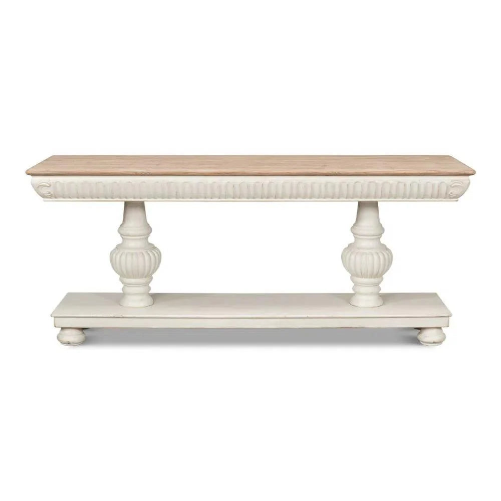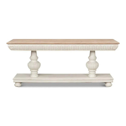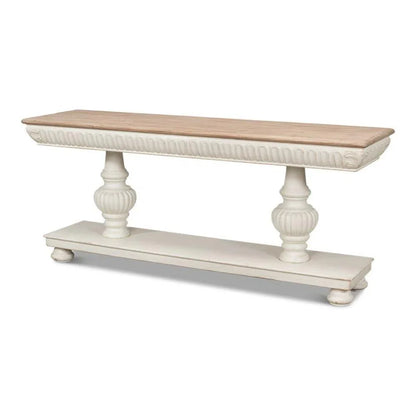 With its classic charm and generous surface space, the Hugo Console adds a touch of elegance to any traditional or cottage-style interior. Crafted with an Antique White base and Natural Top, this console measures 74 inches in width, 20 inches in depth, and 31 inches in height, making it the perfect accent piece for your hallway or living room. Elevate the style of your home with the Hugo Console.