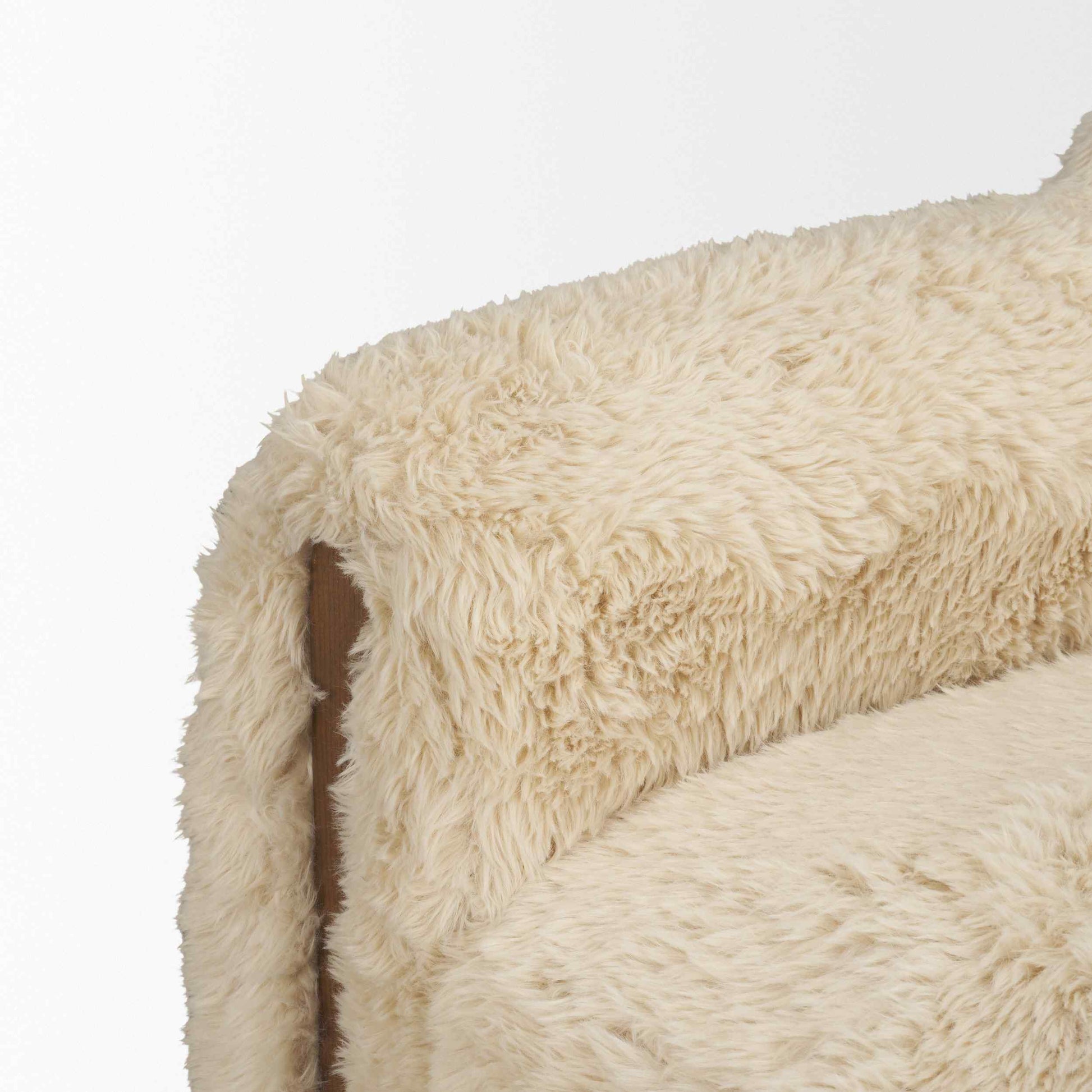 The Huntley Cream Faux Fur Swivel Chair brings a touch of lodge-inspired style to your home. Its ultra-soft Yakety Yak fabric in a soothing cream color invites you to relax. The chair's rounded silhouette and light brown wood accents offer a rustic charm that fits well in cozy living spaces, reading nooks, or bedroom corners. With its smooth swivel function, turning around is a breeze, making conversations more comfortable. This chair combines luxury with a casual vibe, making it a perfect addition for those who appreciate comfort and style. Enjoy the inviting texture and welcoming feel it adds to any room.