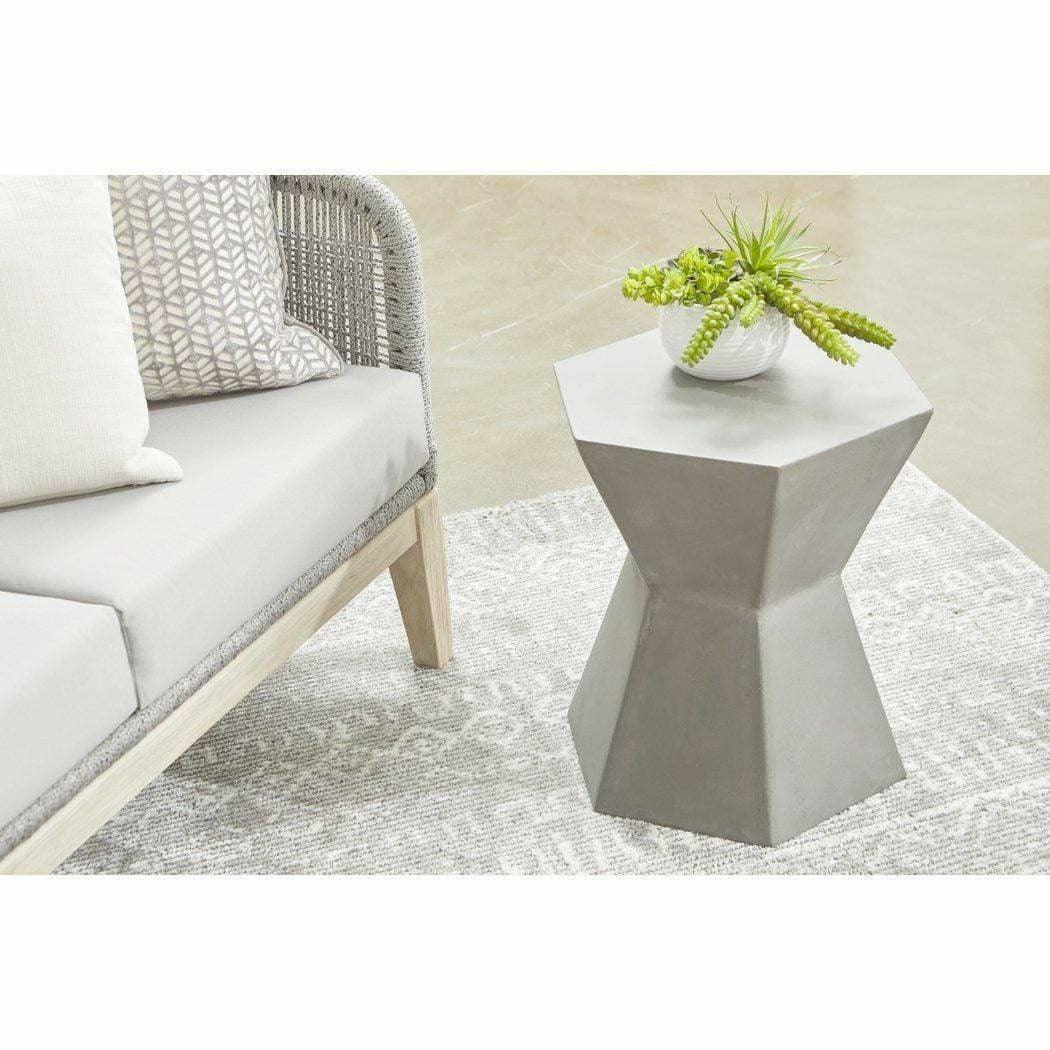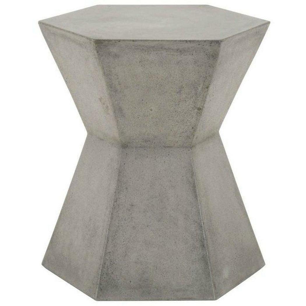 Upgrade your living space with the OPEN BOX Round Bento Accent Table, a sophisticated and exclusive piece. Boasting a contemporary hexagonal shape and a durable Slate Gray Concrete finish crafted from a unique blend of granite stone powder, cement, jute fibers, and water, this table exudes elegance. Keep its luxurious sheen intact by regularly applying Paraffin wax. Celebrate the natural variations and beauty of the District Collection with this end table, featuring a Hexagon hour glass shape and Slate Gray Concrete finish. Made from fiber-reinforced concrete, composed of granite stone powder, cement, natural jute fibers, and water, this material may contain non-structural hairline cracks as a result of the natural curing process.