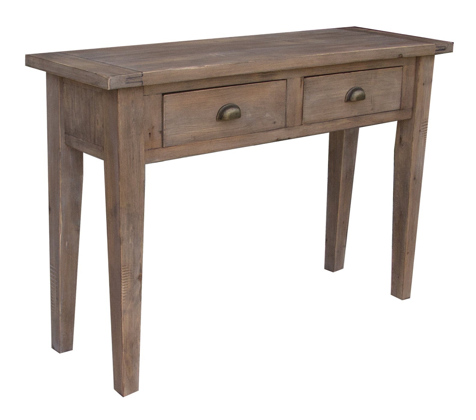 The Irish Coast Console Table offers a classic touch to any room with its light brown reclaimed pine wood. Perfect for small spaces, it combines style and practicality with a sturdy top and two spacious drawers for storage. The table's unique reclaimed hardware adds a rustic charm, making it a great fit for many decor styles. Whether placed in a hallway, living room, or entryway, its compact size makes it versatile and easy to fit in various settings. With this table, enjoy a blend of functionality and timeless design, enhancing your home with both style and utility.
