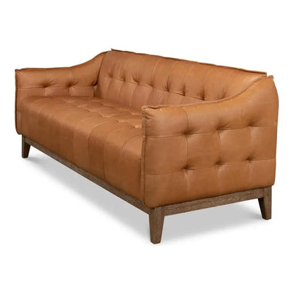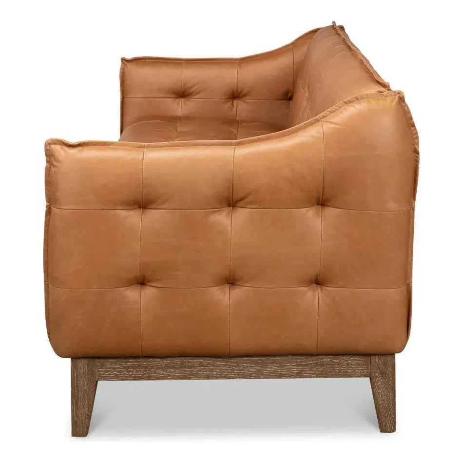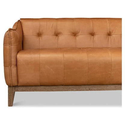 Isaac Tan Leather Sofa With Bench Seat Features: