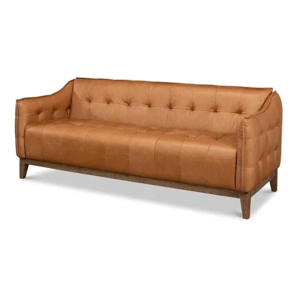 The Isaac Leather Sofa in a rich brown hue is the ultimate blend of style and comfort. it boasts light harness brown Leather Upholstery for a luxurious feel. Crafted from oak with a white wash finish, this sofa adds sophistication to your living space. Expertly crafted for both style and comfort, the Isaac Leather Sofa boasts light harness brown leather upholstery for a luxurious feel.