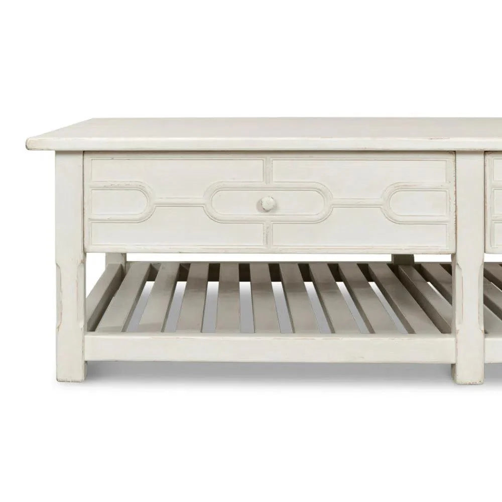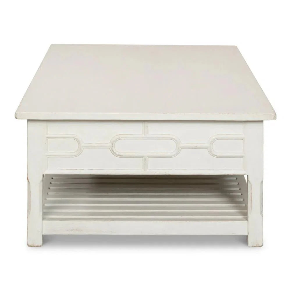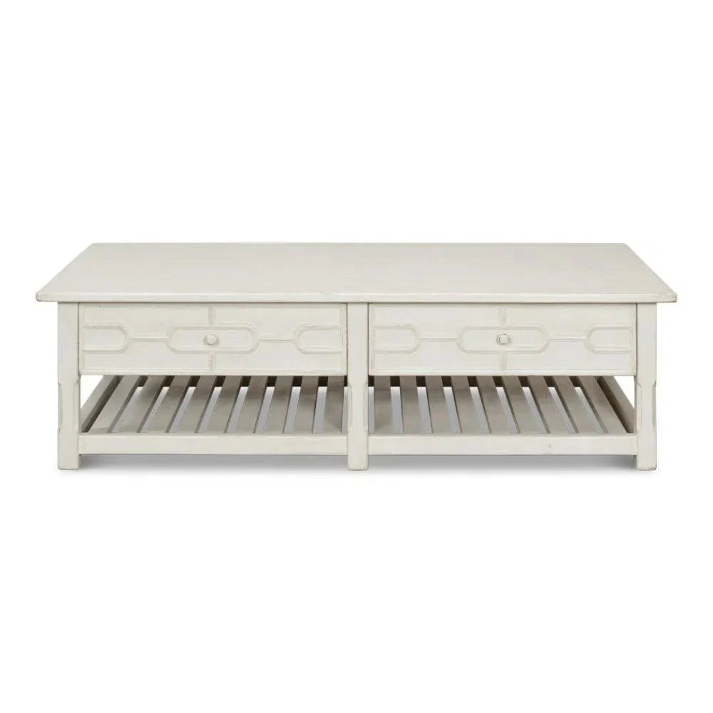 The Isla Coffee Table in Antique White is a stylish and functional addition to your living room. Crafted from pine Wood and featuring an Antique White finish, it exudes classic beauty. this coffee table provides ample room for your coffee table books, decor, or snacks. Ideal for traditional interiors, the Isla Coffee Table adds a touch of timeless sophistication to your decor.
