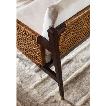 Relax in style with the Isle Of Palms Lounge Chair, crafted to bring comfort and elegance to any home or office setting. This chair is made from solid gmelina arborea, ensuring durability and a timeless look. Its frame is adorned with natural woven cane, adding a unique texture that enhances its aesthetic appeal. Designed with relaxation in mind, the chair includes removable foam cushions that provide ample comfort, making it perfect for long hours of sitting. The Isle Of Palms Lounge Chair is part of the esteemed Wildwood Collection, which is known for its coastal design. Its tapered legs, finished with brass ferrules, add a luxurious touch that complements its overall style.