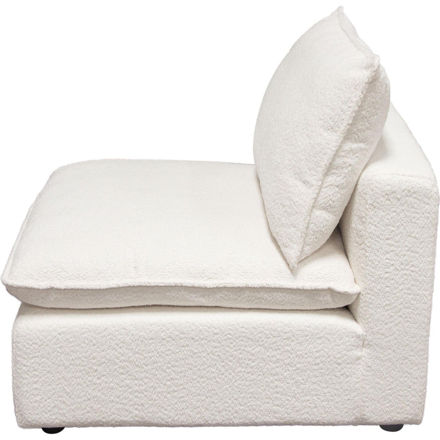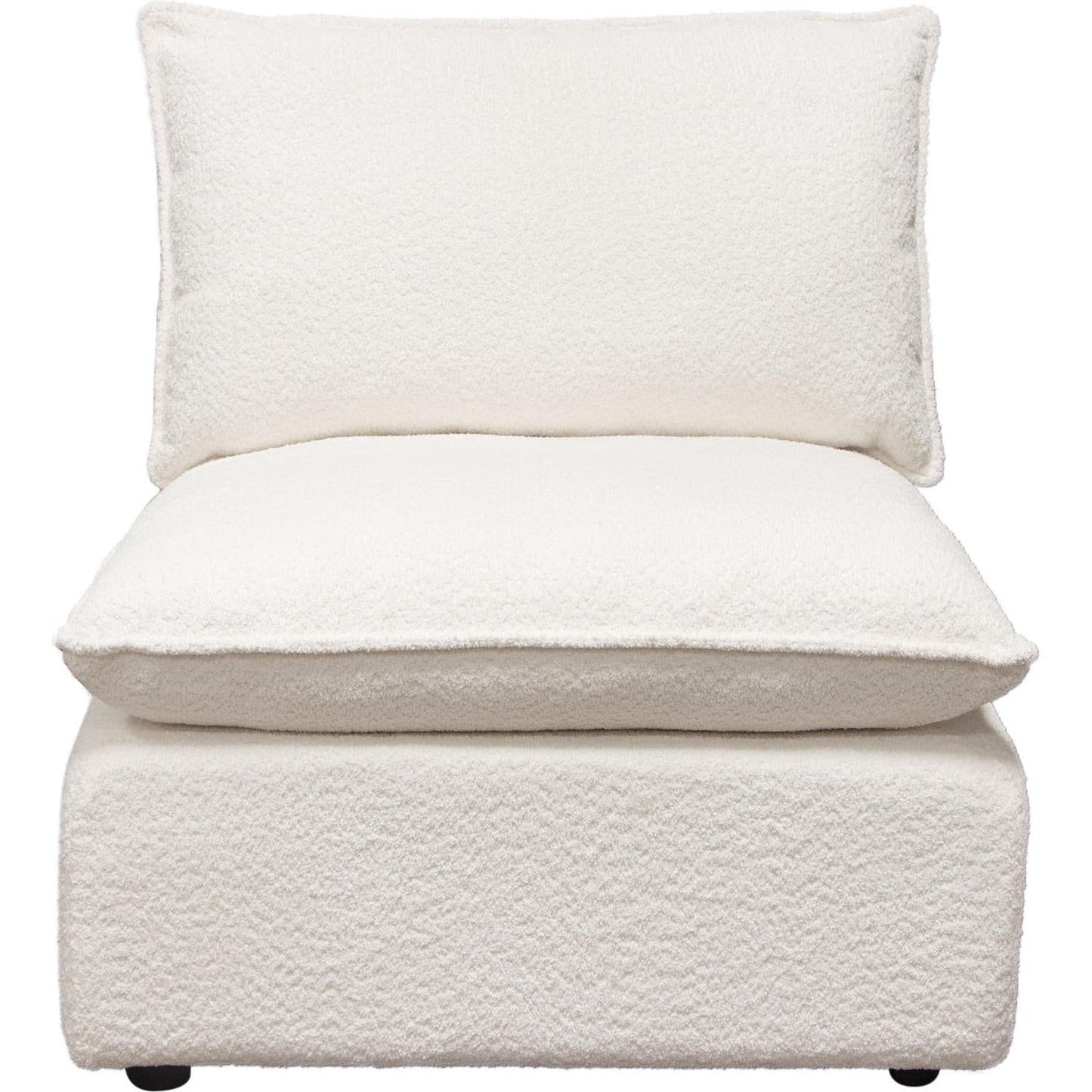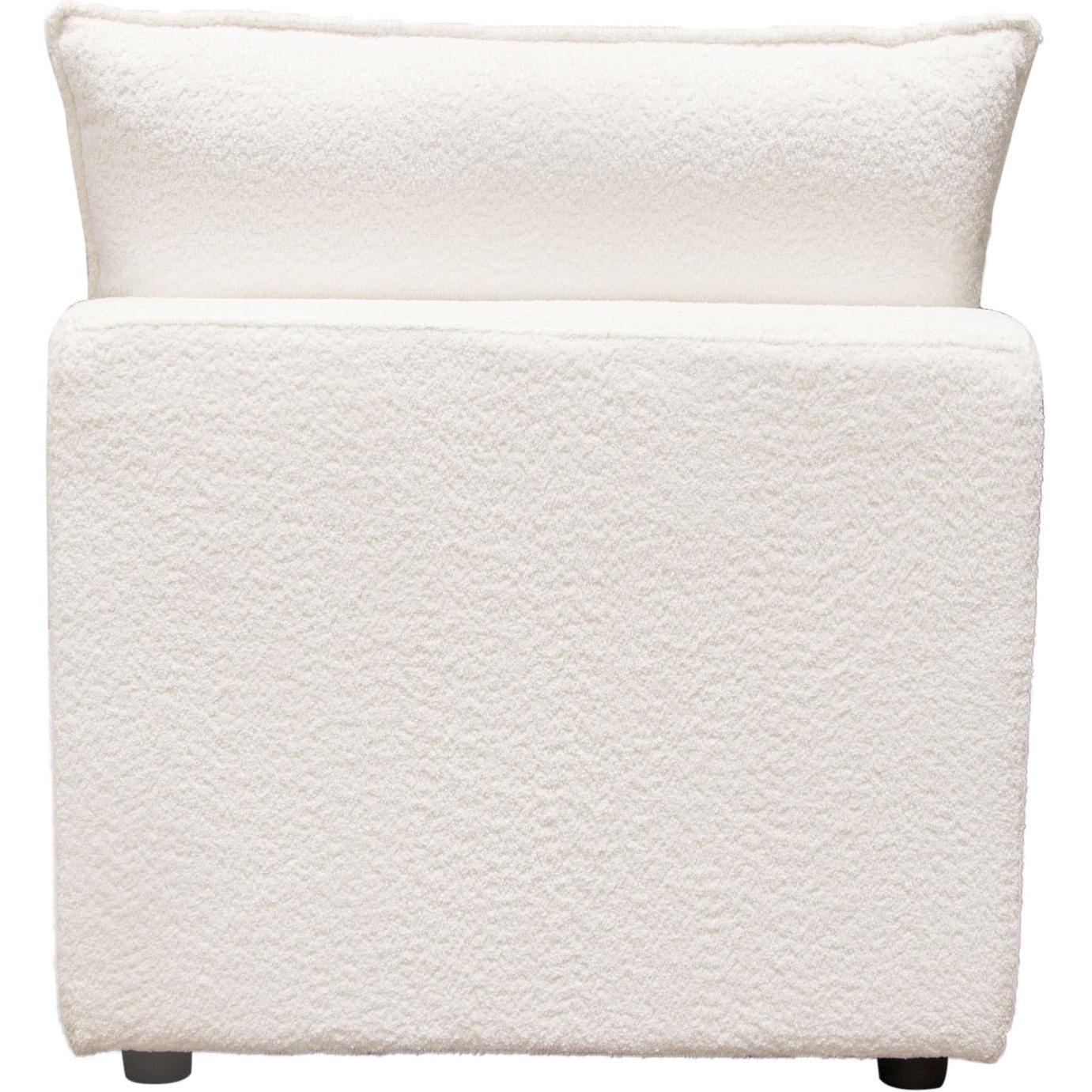 The Ivy Modular Collection by Diamond Sofa features feather down seating with a White Faux Shearling fabric finish. Loose cushion seats and backs creates a relaxed and inviting sit. Many different configurations available with the Armless Chair, Square Corner Chair & Ottoman to accommodate any seating needs you require. Elevate your home decor with the stylish and versatile Ivy Armless Chair.