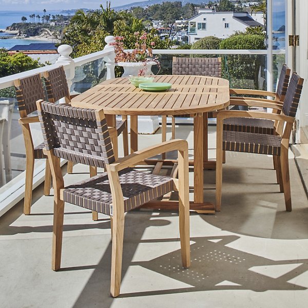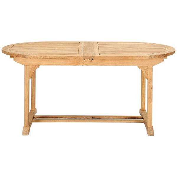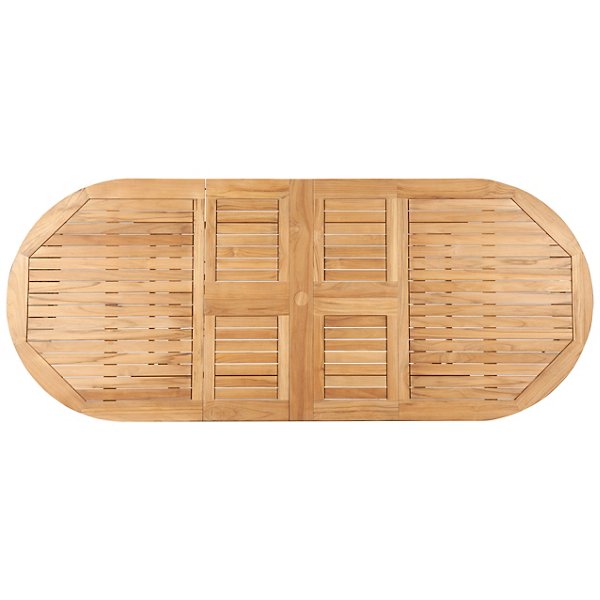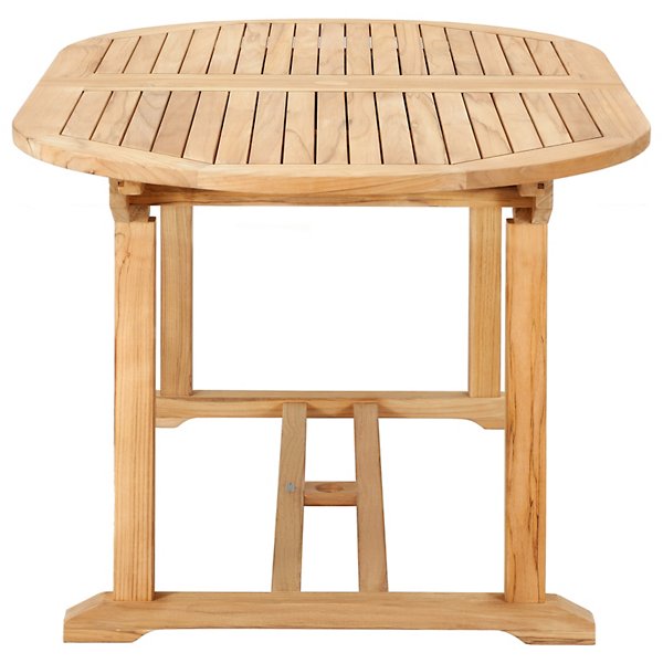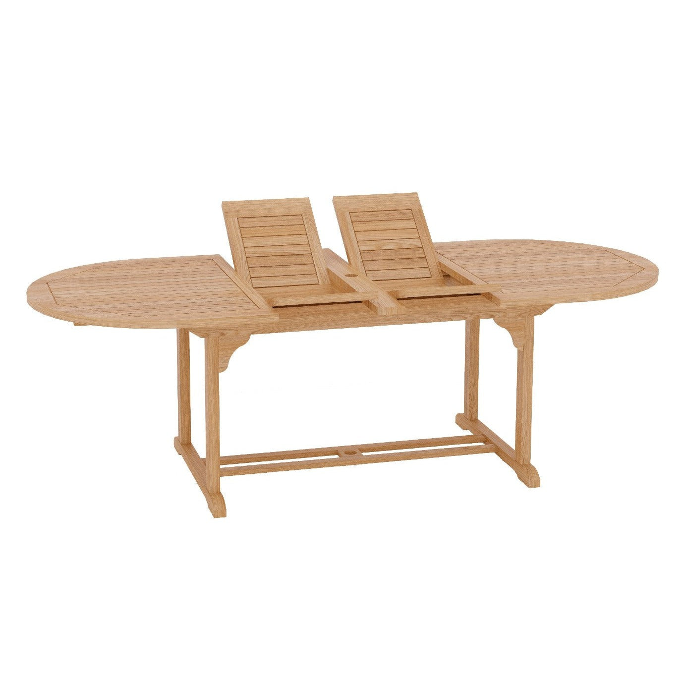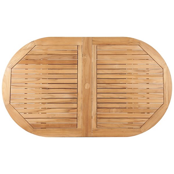 January Oval Teak Outdoor Dining Table with Built-In Extension and Umbrella Hole Features: