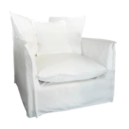 Introducing the Jason Outdoor Slipcovered Chair White, boasting unparalleled sinking comfort and a spacious seat for ultimate relaxation. Its sophisticated, tailored figure adds a touch of refinement to any outdoor setting, while its premium materials ensure long-lasting durability. With limitless versatility for styling, this multi-functional piece is truly a must-have for any outdoor living space.