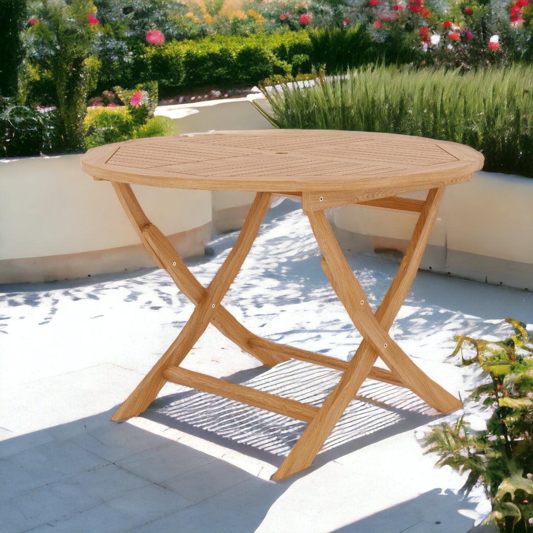 Jett 47-inch Round Teak Outdoor Folding Dining Table Features: