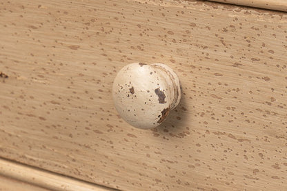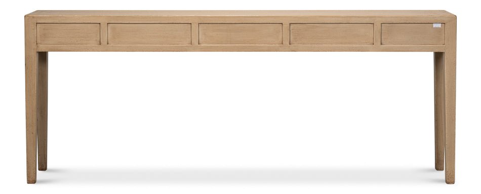 The console table's minimalist design, characterized by its rectangular shape and round knob details, enhances its rustic appeal. It serves as a statement piece that is sure to catch the eye and spark conversation. With its country style and tan color, this table not only organizes but also elevates the aesthetic of your space. Whether repurposed as a jewelry organizer or a casual dining piece, it offers both beauty and utility in a single package.