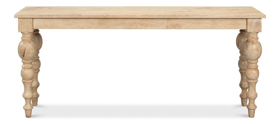 For those who appreciate fine craftsmanship and timeless style, the Jocelyn Console Table offers a perfect blend of elegance and functionality. Its standout feature is the beautifully turned legs that add a touch of drama to any room. The table's warm tan color, achieved through a sienna finish, enhances the natural beauty of mango wood, creating a piece that is both refined and versatile. It's an ideal choice for those seeking a transitional style that complements a wide range of interiors.