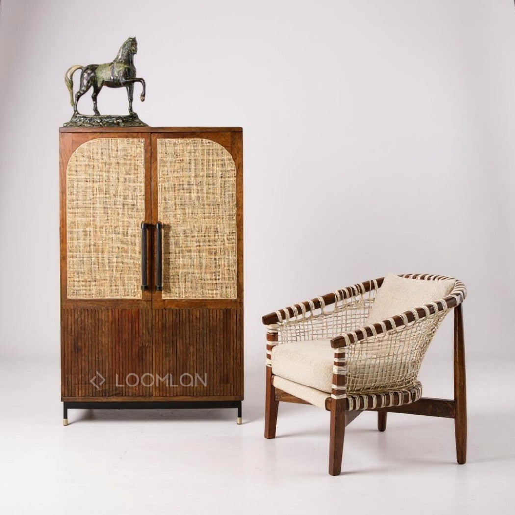 - Design: Woven panel on doors