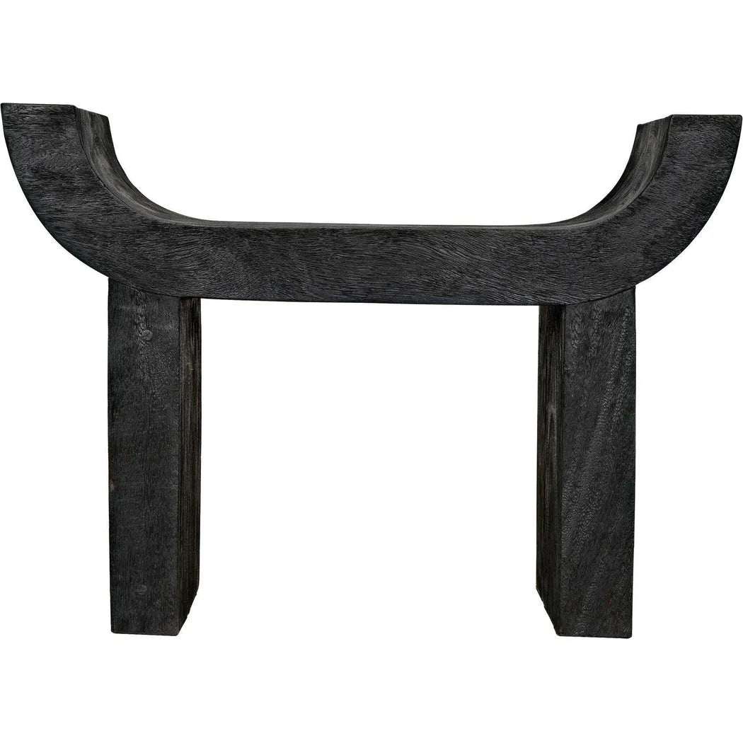 Experience versatile seating with the Kazuo Stool. Crafted from durable and beautiful wood, its burnt black finish adds elegance to any room. The natural aging process creates unique fissures and cracks for an authentic look. Its ample size makes it perfect for any space, while the comfortable seating guarantees a pleasant experience. The Kazuo stool offers ample seating space while maintaining a sleek and stylish profile. Its size makes it a versatile furniture piece, perfect for use in the living room, bedroom, or entryway. Crafted from wood, a durable and beautiful material, the Kazuo stool features a burnt black finish that adds an air of elegance to any setting.