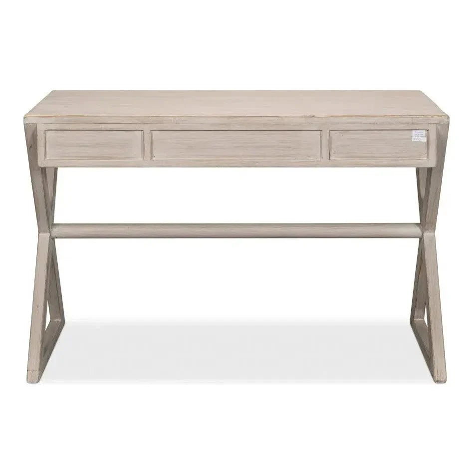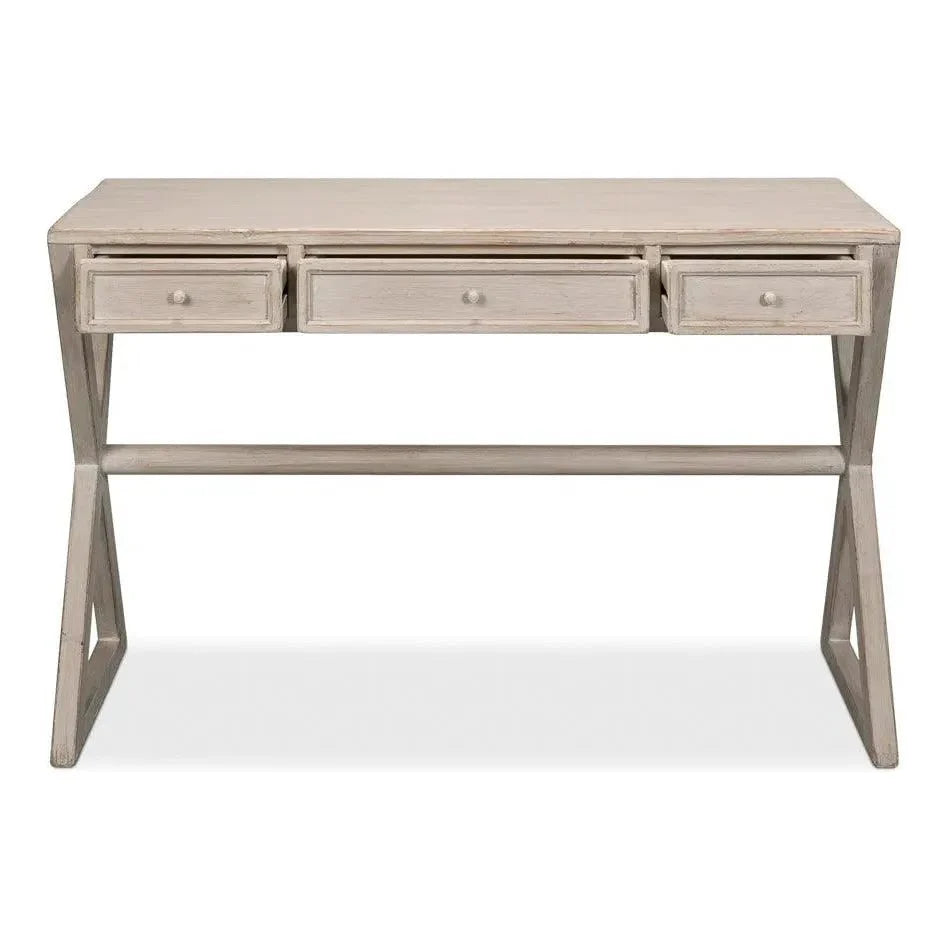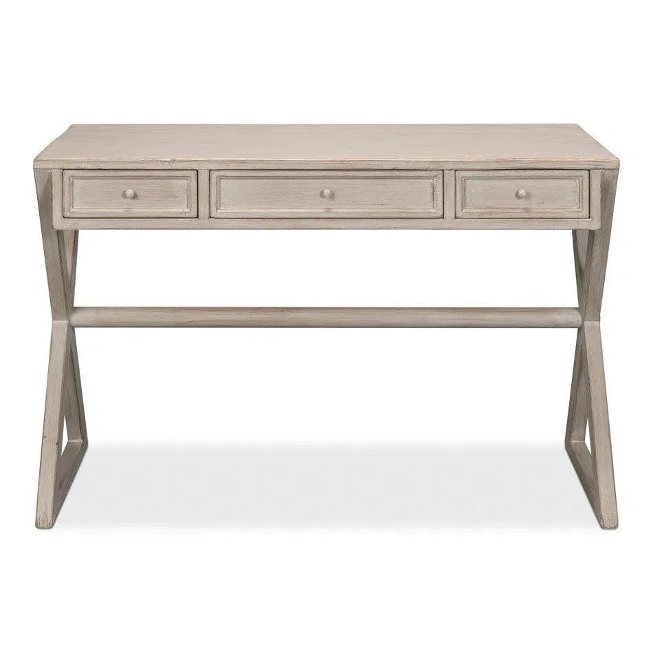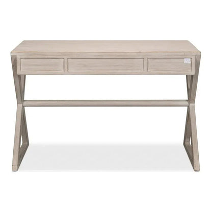 Expertly designed for maximum functionality, the Kitchen Desk Stone Grey offers a convenient workspace and discreet storage. With three drawers to keep your supplies and tools organized and out of sight, this desk utilizes recycled antique pine wood that has been lightly weathered using a multi-step process to achieve a timeless, storied grey/brown finish. The dark bronze cast metal cup pull hardware and smooth sanded edges add a sophisticated touch, while the dual functioning key lock provides both security and style. Perfectly suited for kitchens, mudrooms, and utility spaces, this compact desk maximizes space and adds a touch of rustic charm to any room.
