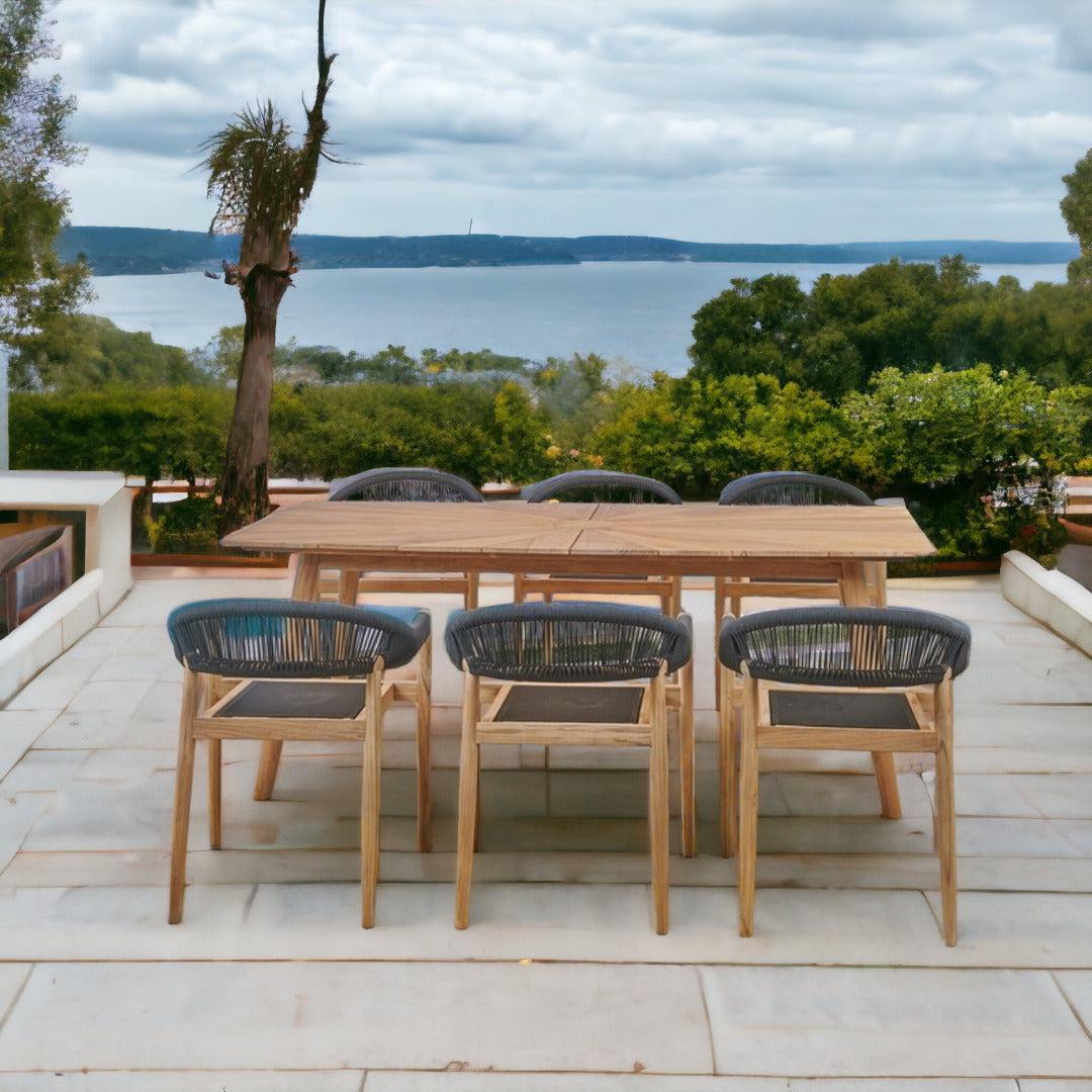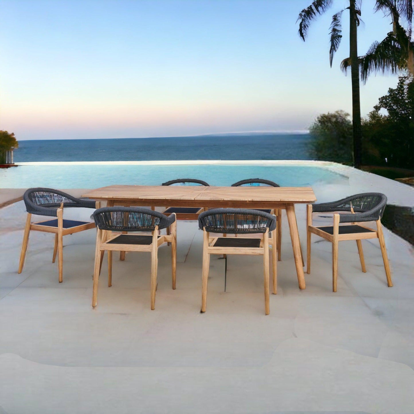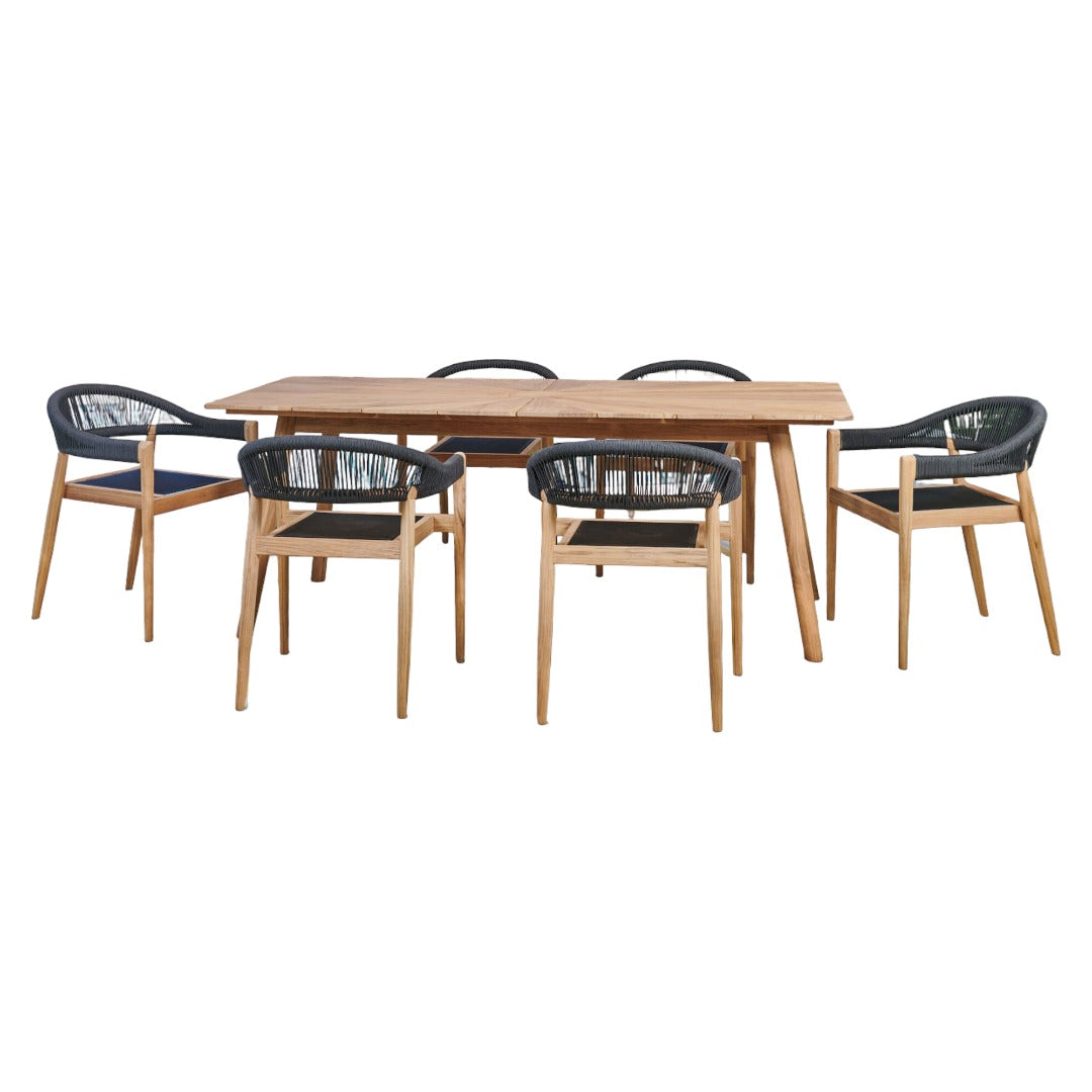 Klint 7-Piece Rectangular Teak Outdoor Dining Set with Stacking Armchairs Features: