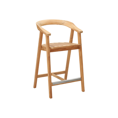 The La Costa Counter Height Dining Set offers a harmonious blend of mid-century charm and modern functionality. Crafted from high-quality teak, this set promises a stylish and durable addition to your outdoor space. Ideal for poolside enjoyment, patio gatherings, or enhancing your outdoor kitchen, the counter-height table and chairs provide a comfortable setting for dining and relaxation. The chairs feature a smoothly curved design, adding a touch of elegance and comfort to elevate any outdoor living area.