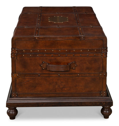 Laramie Trunk Coffee Table Rich Brown Leather Charm Features: