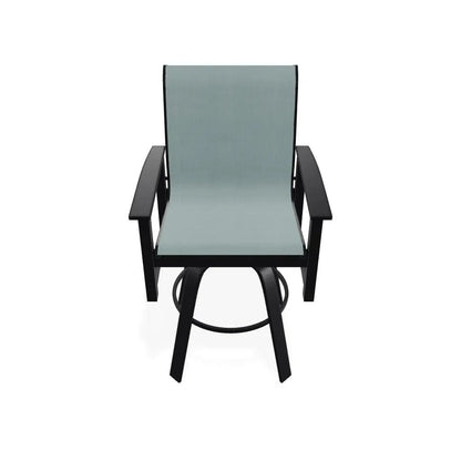 What outdoor furniture material lasts the longest? The Leeward Marine Grade Polymer Sling Bar Height Swivel Arm Chair uses marine grade polymer construction that outlasts wood, wicker, and standard plastics by decades, never cracking, fading, or requiring protective treatments.