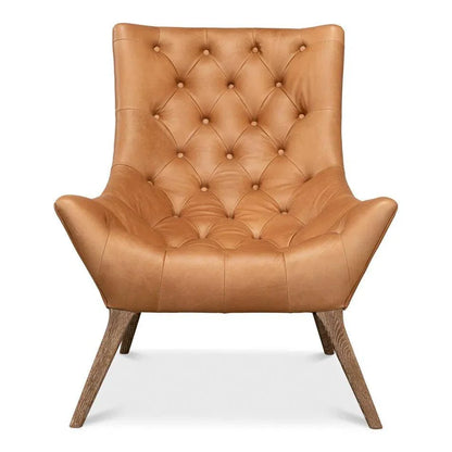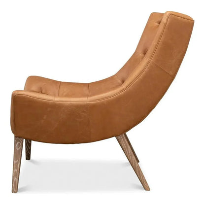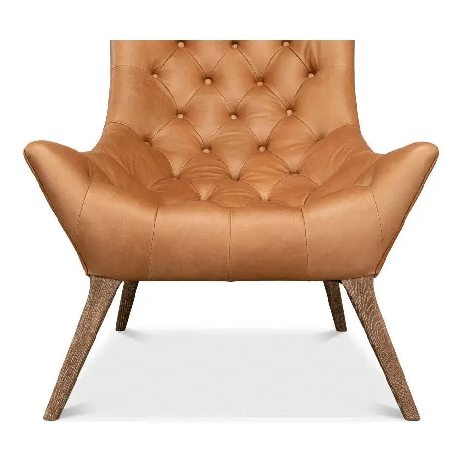 The Lola Leather Chair, envelops you in comfort and style. Upholstered in light harness brown Leather, this chair is supported by an oak frame with a white wash finish, making it an exquisite addition to your living space. Experience both luxury and durability in your living space with the Lola Leather Slipper Accent Chair. Its carefully crafted oak frame, finished with a white wash, provides a strong and stylish foundation for the chair. Upholstered in light harness brown leather, this chair envelopes you in unmatched comfort. Elevate your home décor with this exquisite piece that combines timeless design with superior quality.
