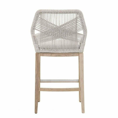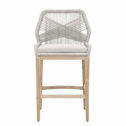 Loom Outdoor Barstool Taupe and White Flat Rope, Pumice, Natural Gray Teak Wood Features:
