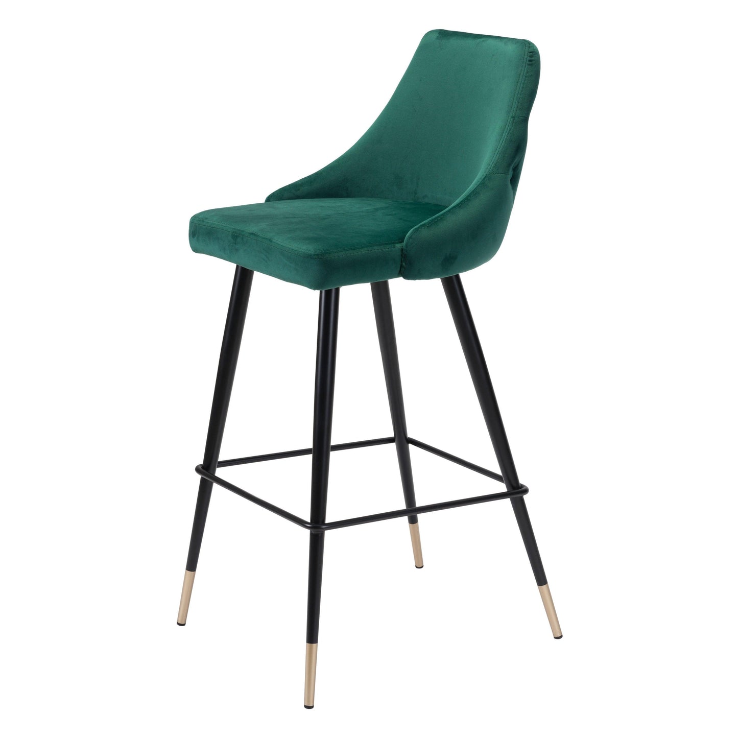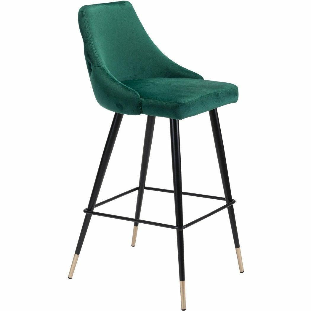 Make a bold statement with our Piccolo Bar Chair Green! This chair is perfect for those who love to take risks. With its sleek design and button tufted tapered back, it's a statement piece for any kitchen island or bar area. The comfortable footrest and elegant brushed brass finish make it both functional and fashionable. Supports up to 280 lbs and includes floor protectors. Adult assembly required.