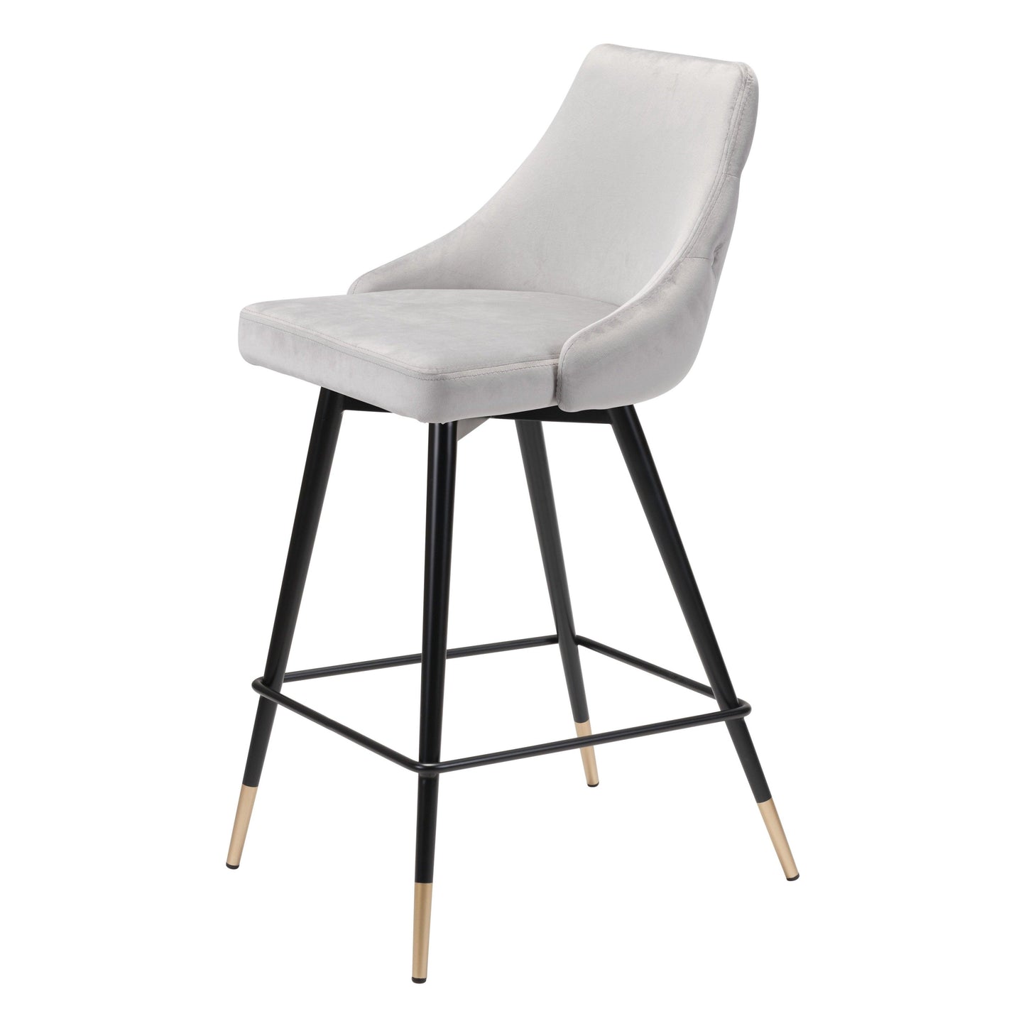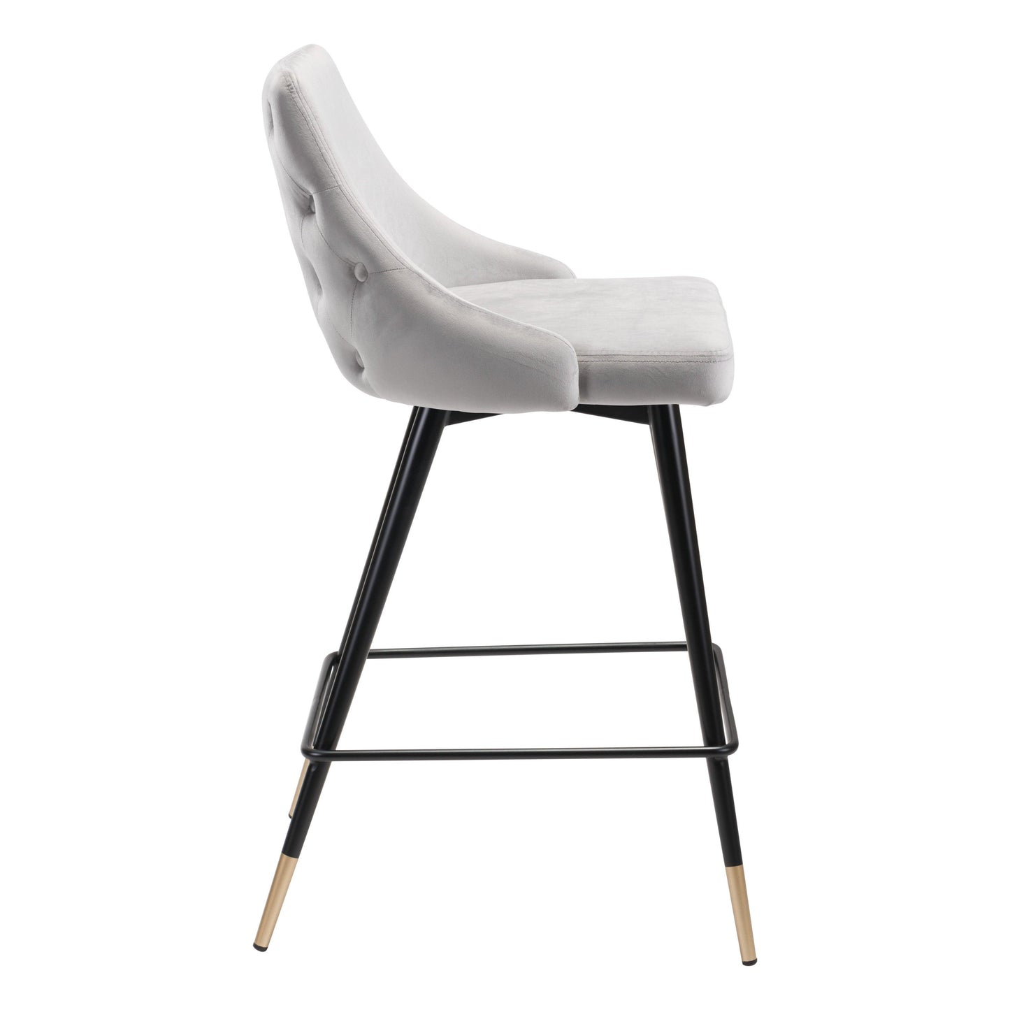 Take a risk and embrace your daring side with the Piccolo Counter Chair Grey! Perfect for fashion lovers, this chair boasts a stunning tapered back with button tufting and slim pencil legs in a brushed brass finish. Support slats act as a footrest for added comfort while seated. Elevate your space with this eye-catching and sturdy chair. Embrace your daring side with the Piccolo Counter Chair Grey! Perfect for fashion lovers, this chair is sure to make a statement at your kitchen island or counter height table. Admire its stunning tapered back with button tufting from every angle. Stay comfortable with support slats that act as a footrest while seated.