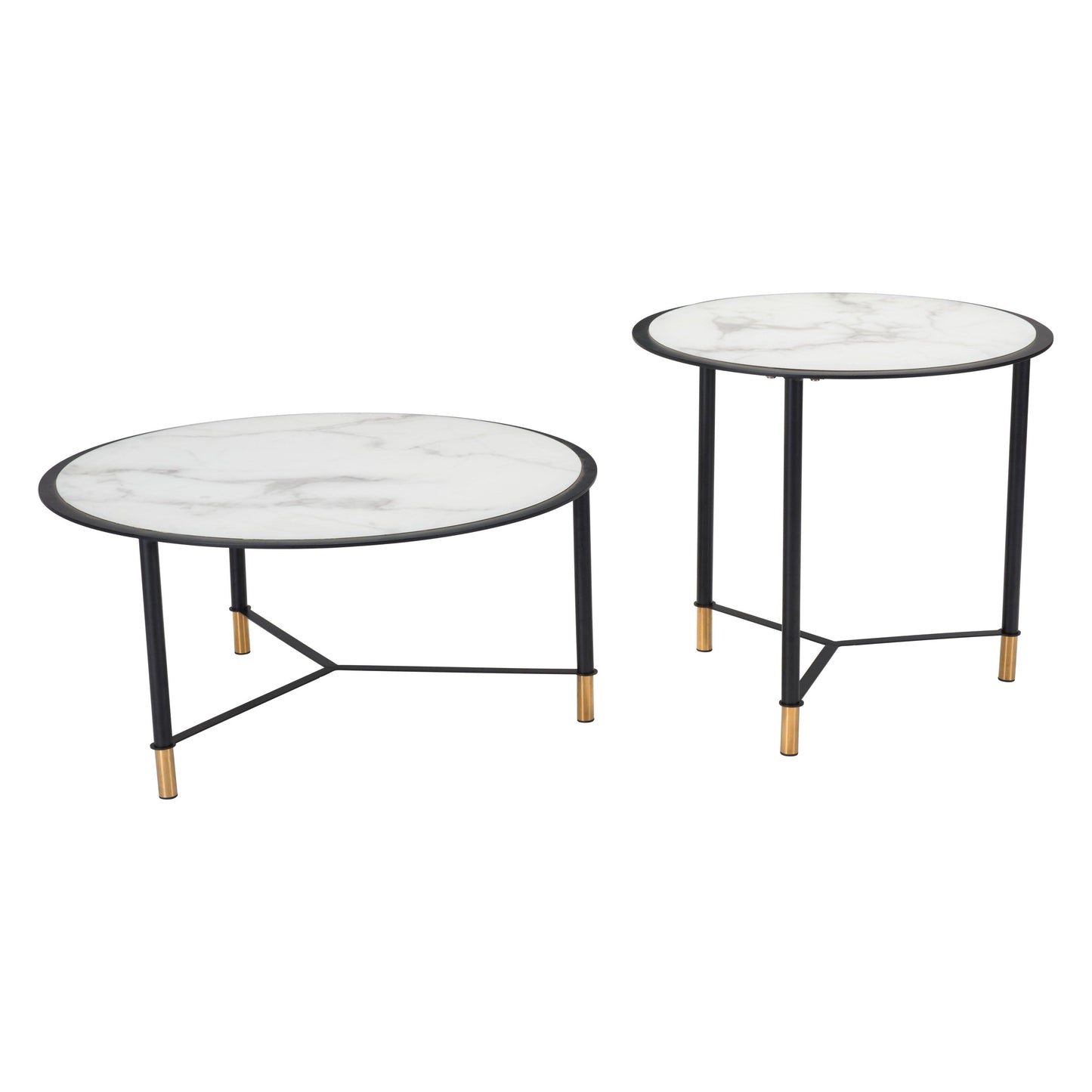Unleash your daring design sense with this Set of 2 Davis Coffee Tables in Black White. Made from powder coated steel and tempered glass with a mesmerizing marble print, this retro-mod table set adds a bold touch to any space. Sturdy and stylish, with easy assembly and care instructions included. Davis Coffee Table looks retro mod with its maximalist mid century modern twist. This table set is made from powder coated steel and tempered glass with marble print; It looks sharp in any space, living room or hotel lobby.