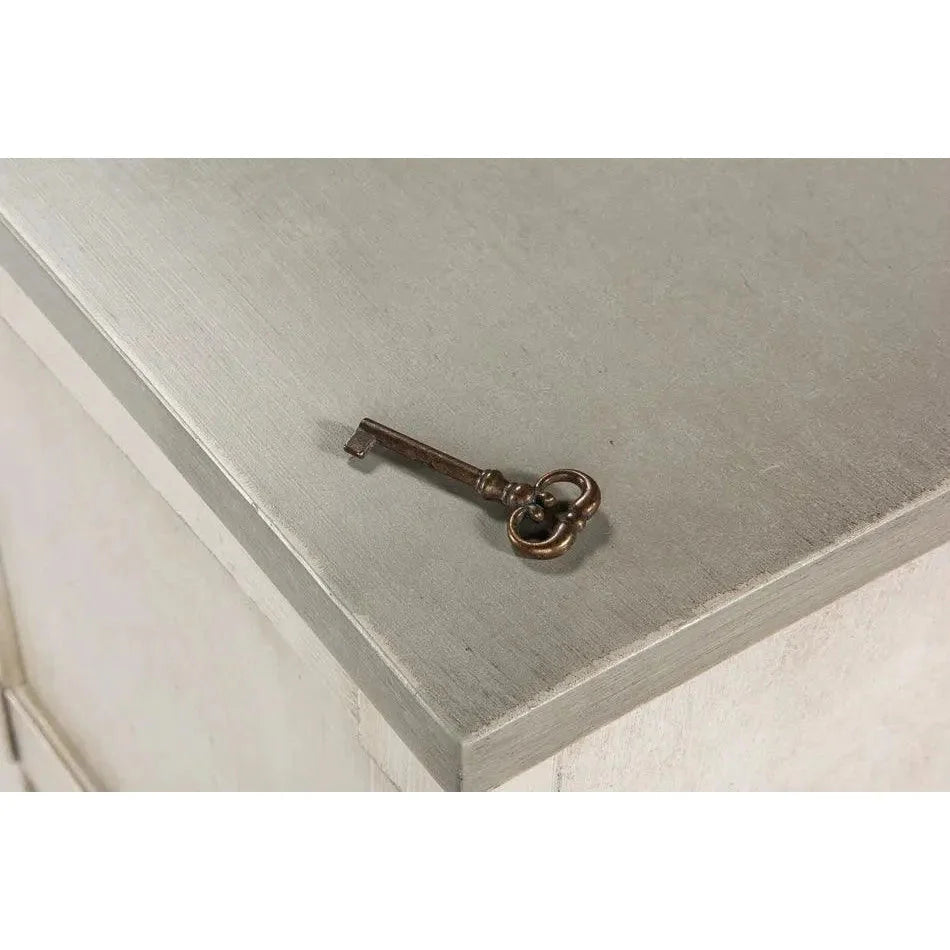 This Luciana buffet offers a transitional design with a white case and granite countertop. Behind six recessed panel doors adorned with bin pulls, three adjustable shelves provide ample storage space. The recycled Wood has been beautifully distressed by hand, showcasing its authentic imperfections from its previous life. With expert design and craftsmanship, this buffet merges style and function.