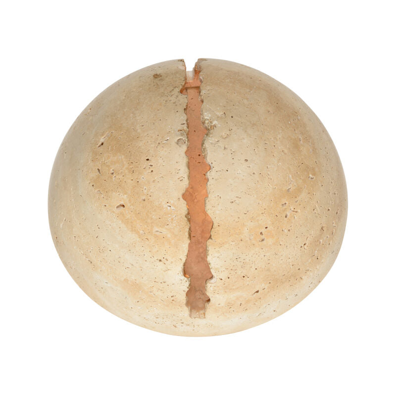 Enhance your home with the Lunar Onyx and White Sconce, a perfect blend of rustic charm and modern design. This sconce is crafted from natural travertine, showcasing a unique spherical shape that gracefully splits at the center. This design choice allows a soft, warm glow to emanate and fill your space with soothing light. The rich, dark and cream finish adds a striking contrast to the gentle illumination, creating a captivating visual appeal. Its artisan-inspired design ensures that it stands out in any setting, making it an ideal choice for those looking to add an organic touch to their interiors.