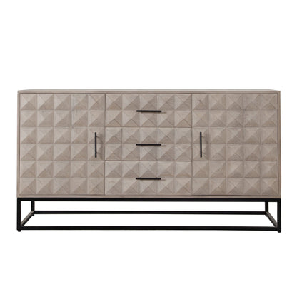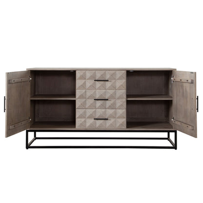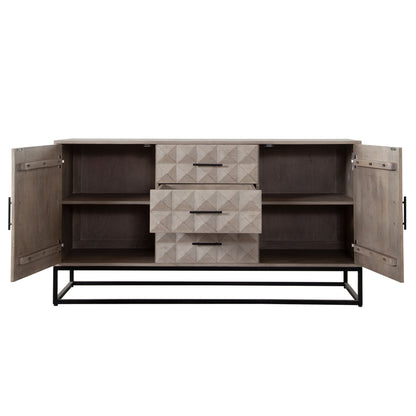 This dresser is not just about looks; it's designed with practicality in mind. It features three spacious drawers and two doors, offering ample storage space to help you maintain a clutter-free environment. Inside, you'll find four interior shelves that provide organized storage solutions for your belongings. The metal drawer glides ensure smooth and easy operation, making it a user-friendly choice for everyday use. Whether placed in the bedroom or living area, this dresser is sure to meet your storage needs while elevating the room's decor.