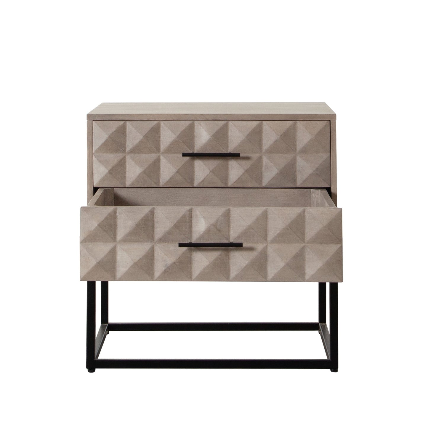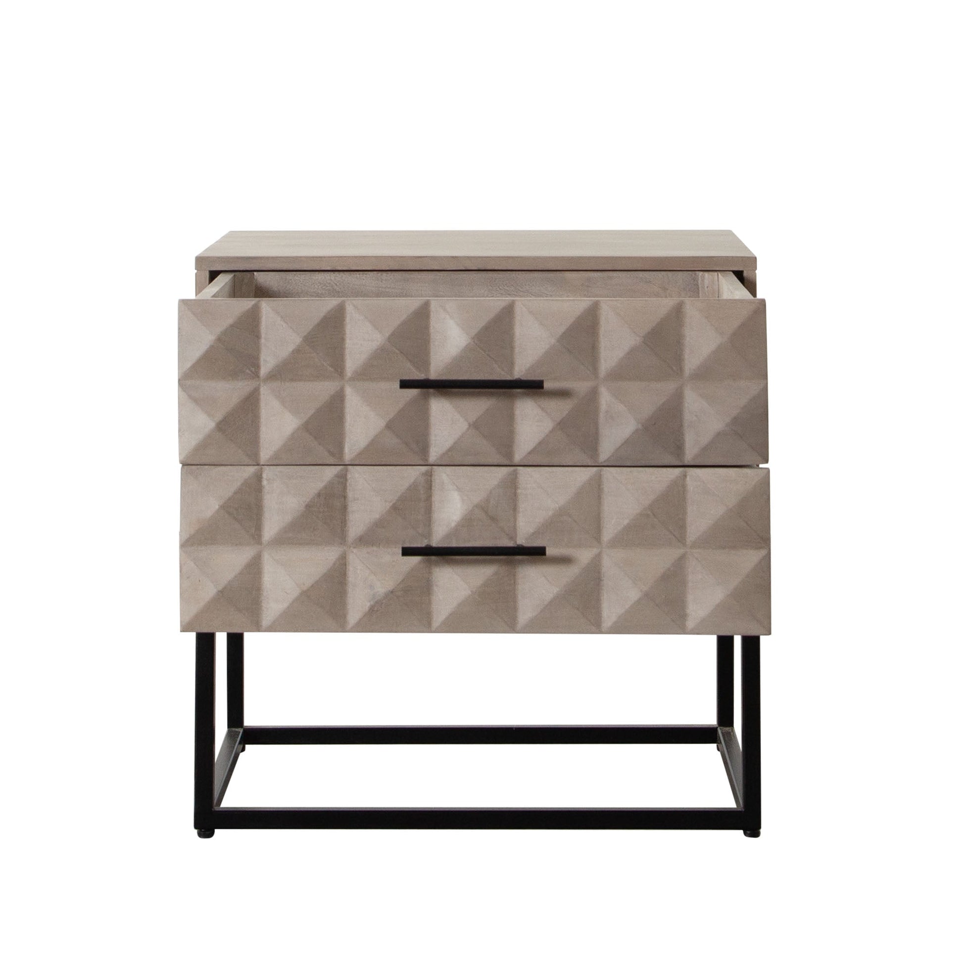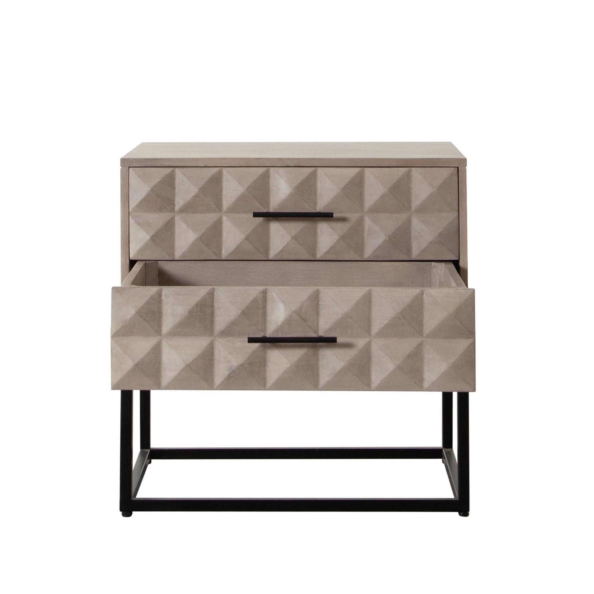 Set atop a sturdy black powder-coated metal base, the Madera table not only offers durability but also a modern aesthetic touch. Its compact size allows it to fit seamlessly into smaller spaces, making it an ideal choice for bedrooms, living rooms, or entryways. The combination of wood and metal materials ensures that this piece will serve as a reliable companion for years to come. Whether you're storing books, electronics, or personal items, the Madera table provides ample storage space while enhancing your room's decor.