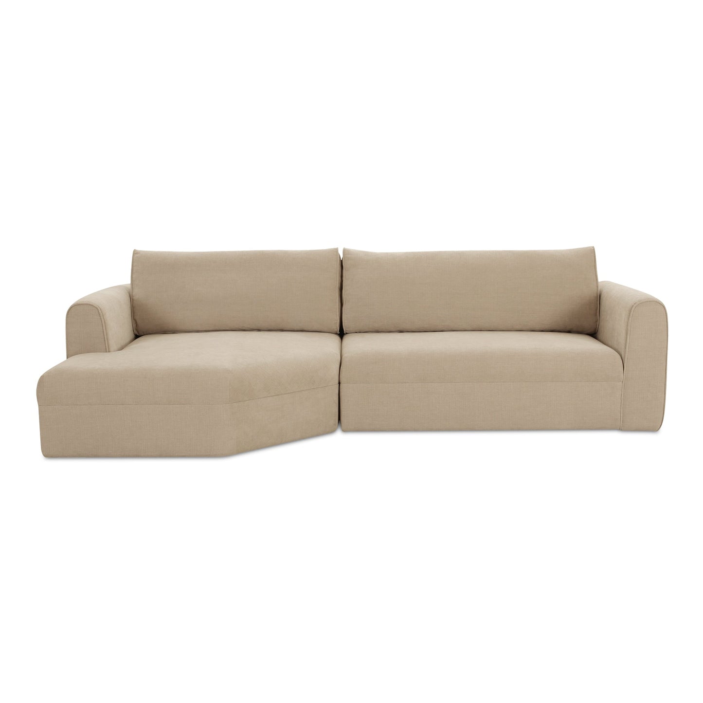 The Madrid Sectional offers an inviting blend of comfort, style, and thoughtful design. Upholstered in ultra soft chenille fabric with a tactile railroad weave, this sectional is available in two sophisticated colors: Heritage Pink and Cool Beige. The tonal piping on the arm and back cushions adds a subtle detail that enhances its tailored look. Designed with a unique wide, angled chaise, the Madrid stands out from traditional sectionals, providing ample space for extended lounging and relaxation. Whether you choose the left-facing or right-facing configuration, this piece fits seamlessly into a variety of room layouts and decor styles.