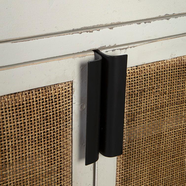 Enhance your home with the Magnolia Sideboard, a perfect blend of style and practicality. This oversized buffet is crafted from reclaimed pine and cane, offering a sustainable choice for environmentally conscious consumers. Its white color and distressed finish create a timeless look, while the black handles add a modern touch. The natural cane weave on the front panels brings warmth and texture to your living space, making it an eye-catching centerpiece in any room.