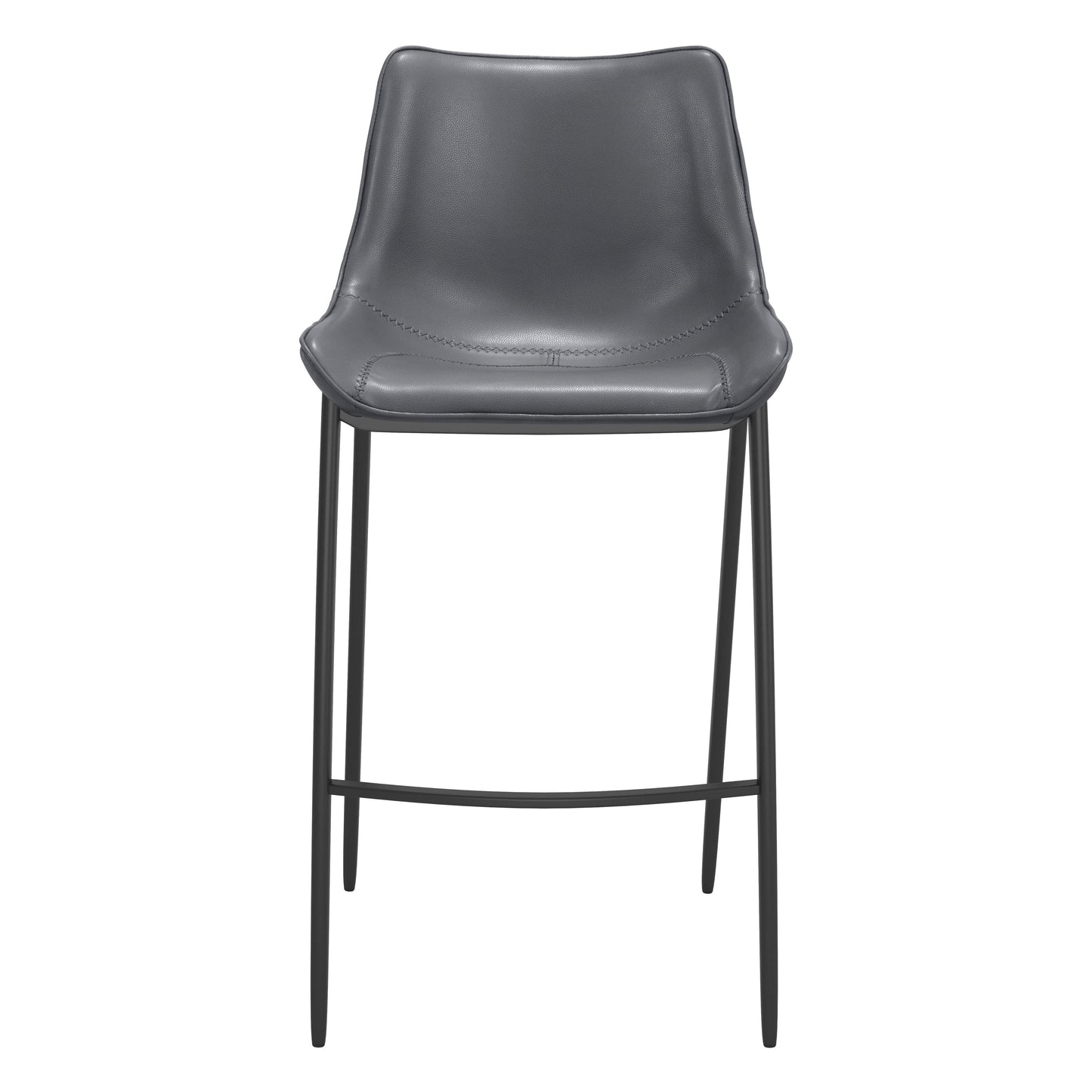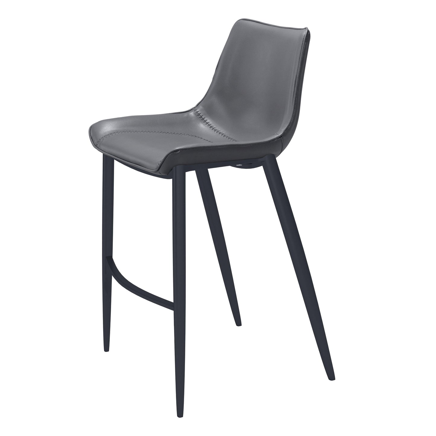 Take a chance on the Magnus Bar Chair (Set of 2) in Dark Grey and Black. With a sleek design and super comfortable curved seat, this bar chair is perfect for everyday use. The matte brown Stainless Steel legs and protective plastic feet make it a durable choice. Supports up to 285 lbs and features adjustable height. High design meets everyday casual. This handsome bar chair with its slim profile pulls up perfectly to the bar. Its super comfortable curved seat is covered in white faux leather with dramatic stitching. Matte brown Stainless Steel legs are complete with protective plastic feet to keep your floors scratch-free.