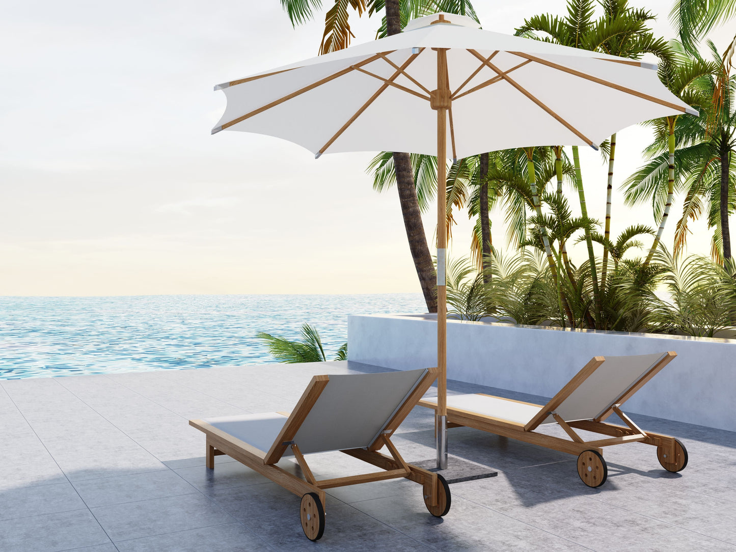 Market 118-inch Diameter Teak Outdoor Umbrella in White Features: